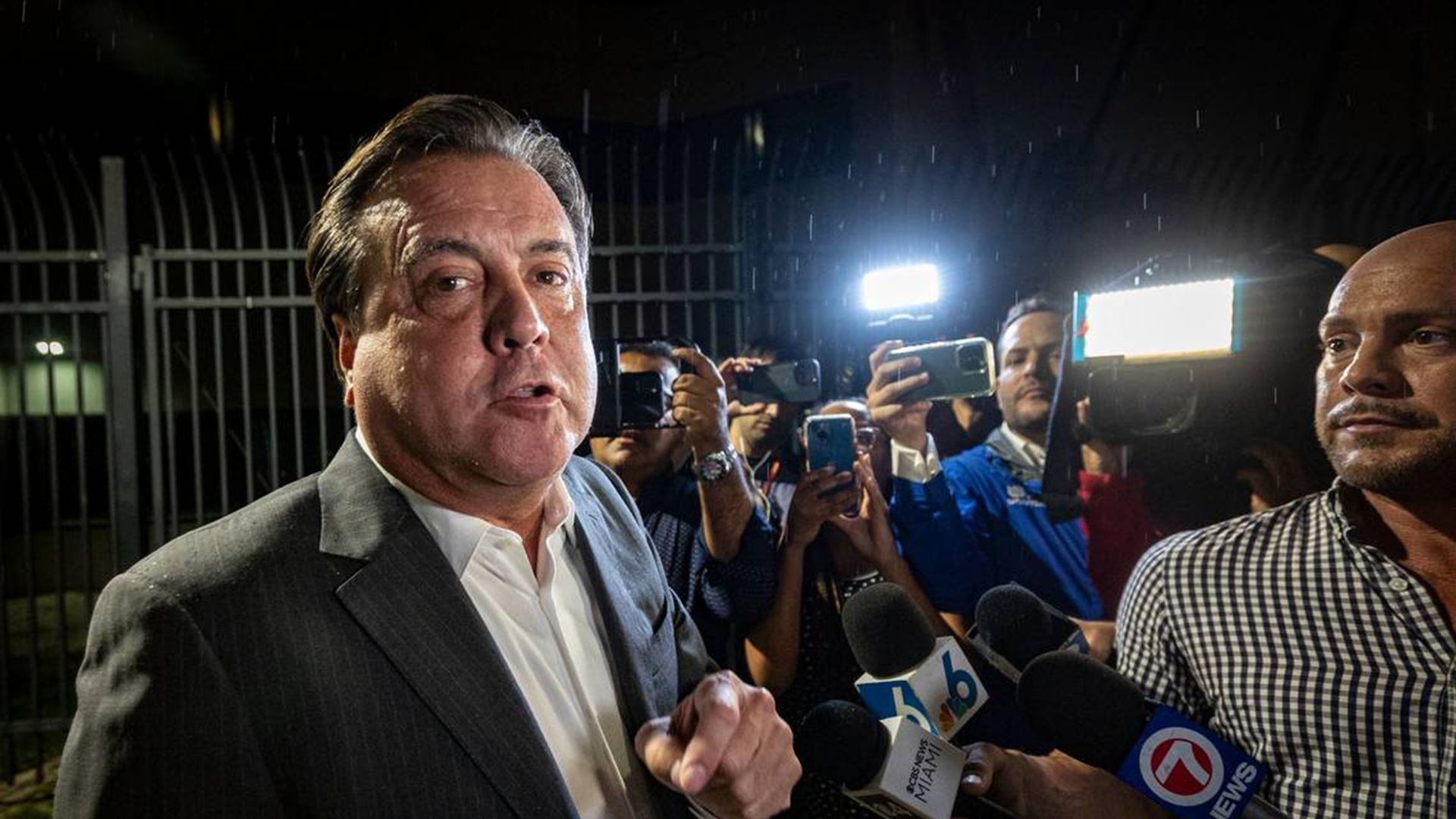 Suspended Miami City Commissioner Alex Díaz De La Portilla speaks to reporters after he was arrested on corruption charges in September. Photo: Jose A. Iglesias/Miami Herald/Tribune News Service via Getty Images