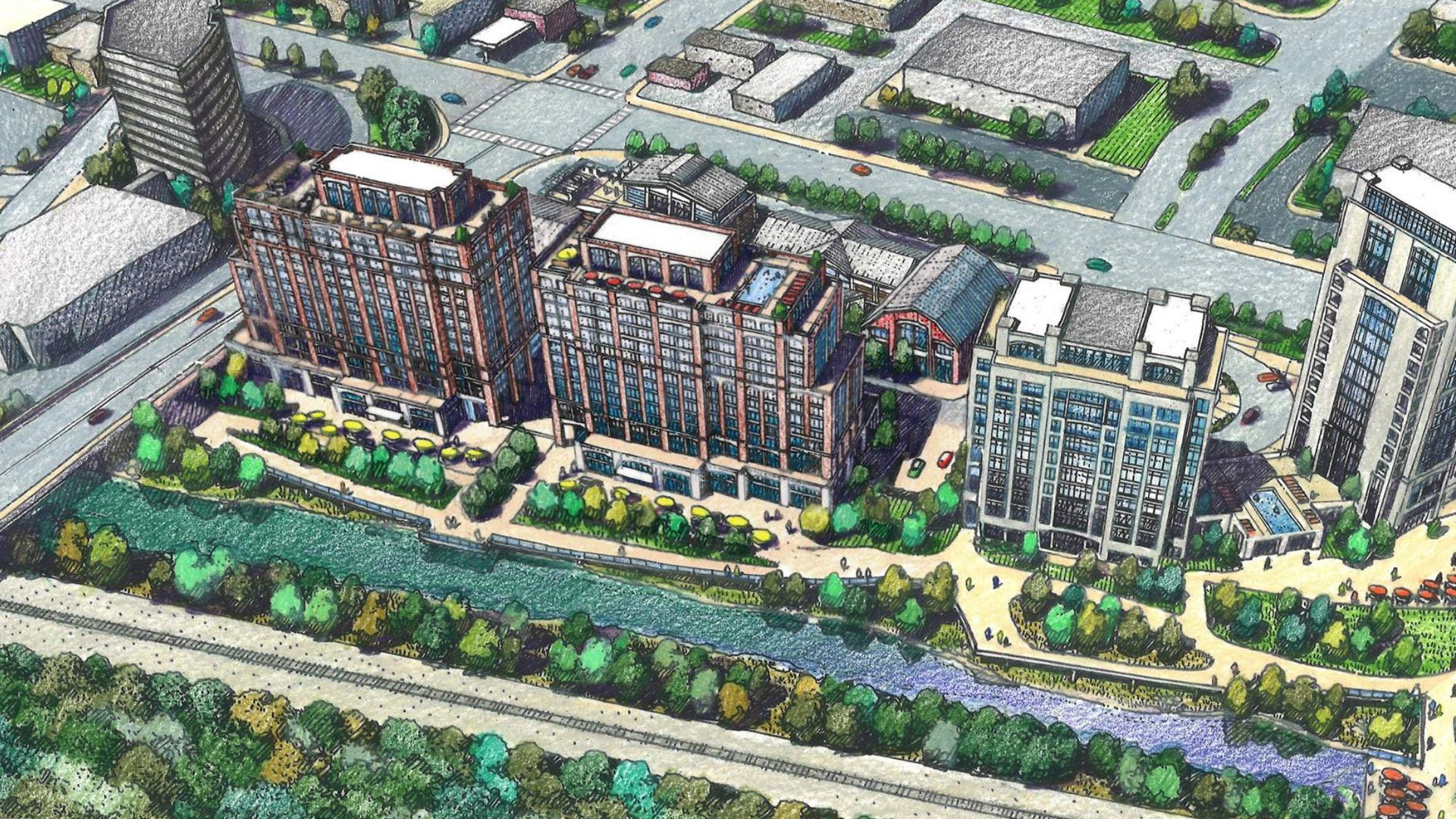 - A series of towers ranging from 11-15 stories would house up to 120 condos and 380 apartments, per planning documents. The 15-story building could also include hotel space with as many as 120 rooms.
