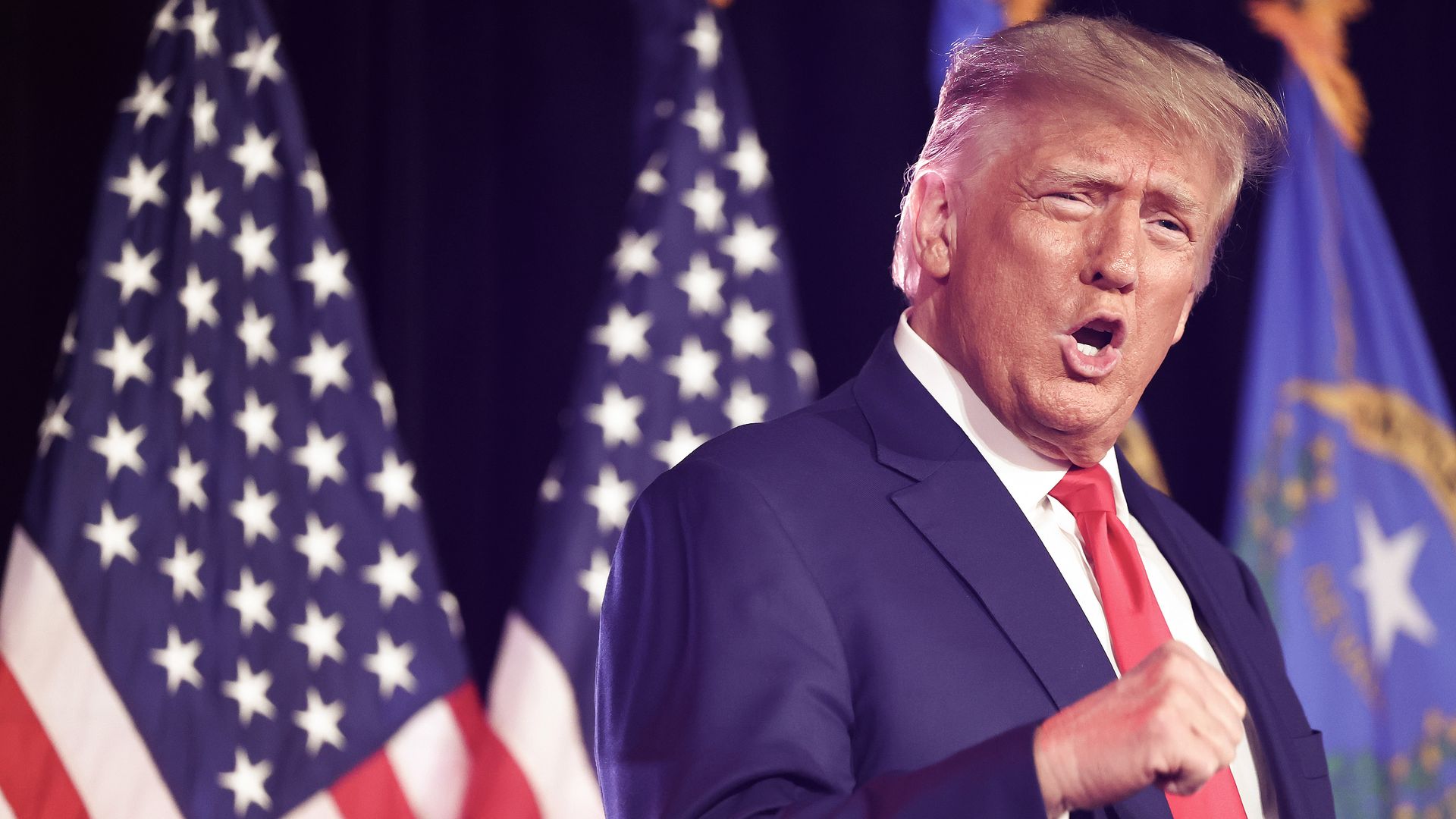 Former U.S. president and Republican presidential candidate Donald Trump prepares to deliver remarks at a Nevada Republican volunteer recruiting event on July 8, 2023, in Las Vegas, Nevada. Photo: Mario Tama/Getty Images