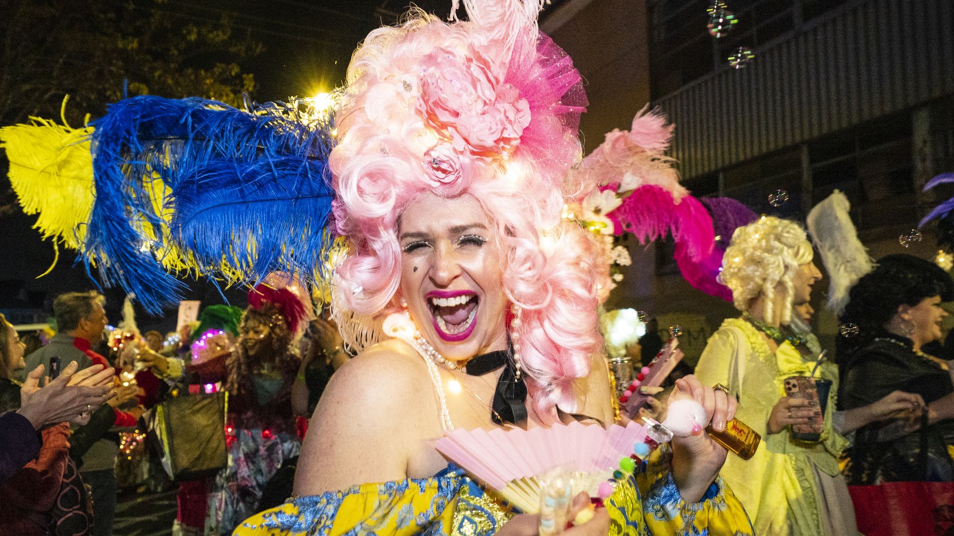 The Merry Antoinettes, pictured here marching in Krewe Boheme in 2022, host a costume market on Saturday. Photo: Erika Goldring/Getty Images