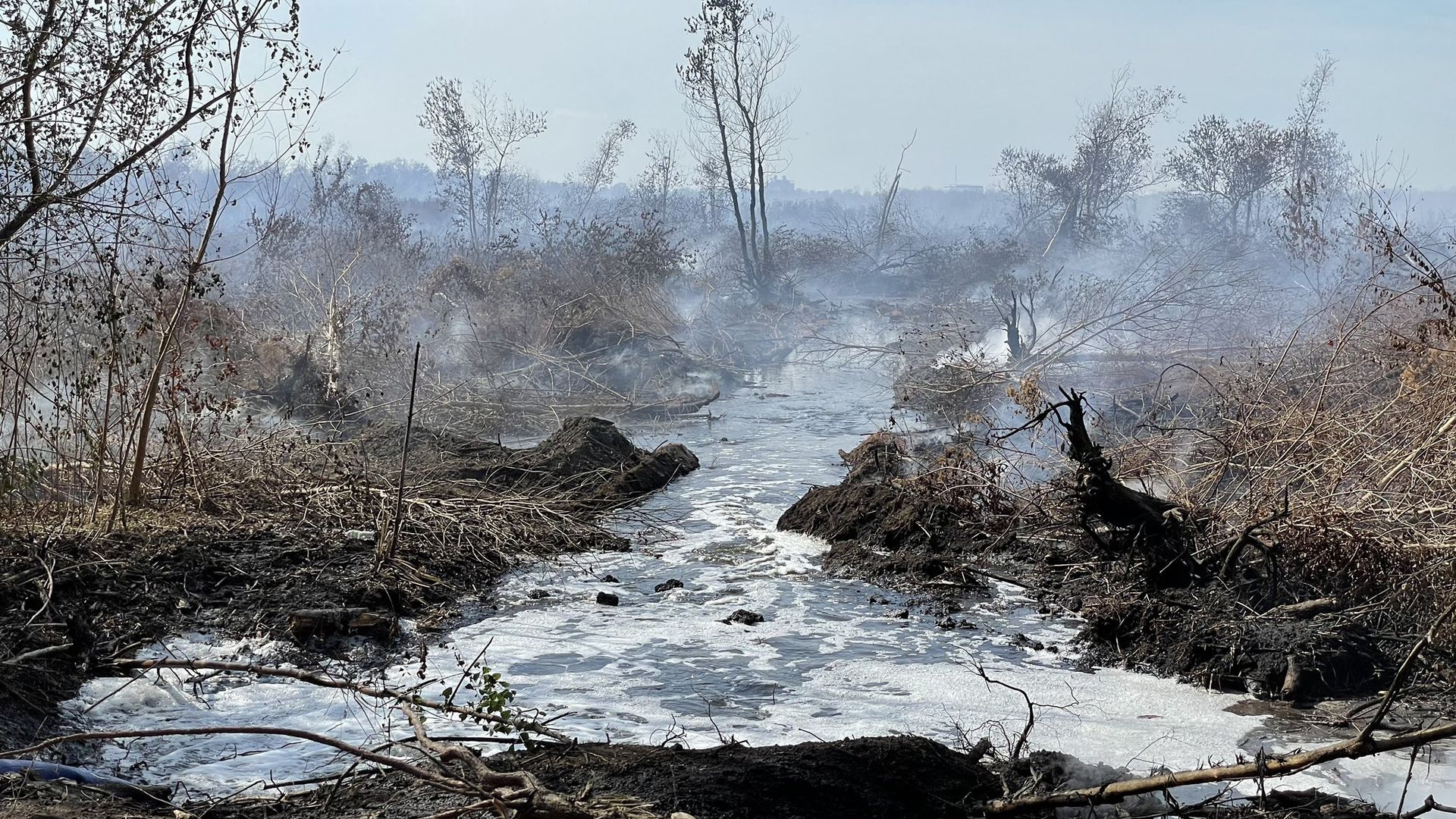 New Orleans firefighters are flooding an underground marsh fire in New Orleans East that's been burning for at least three weeks and spreading smoke across the city. Photo: Chief Chris Mickal, NOFD photo unit