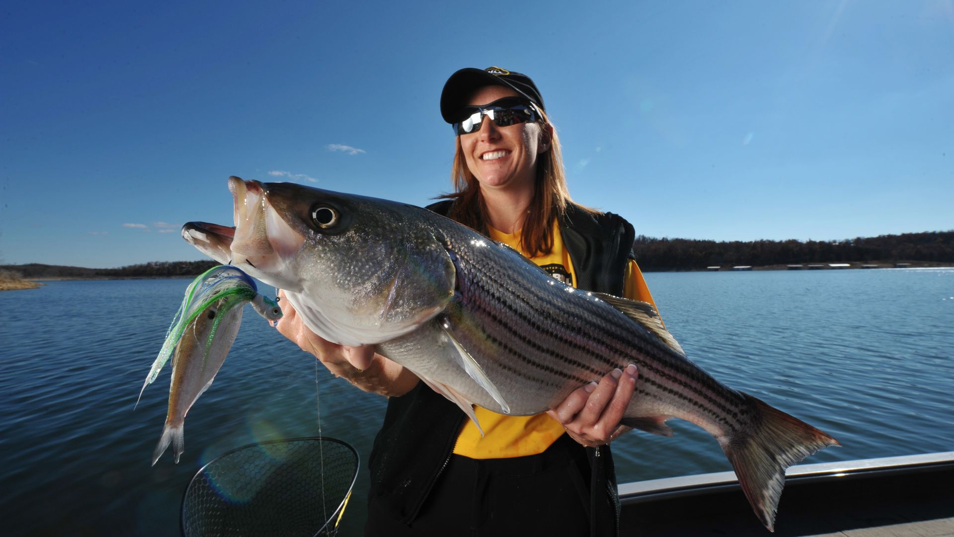 A trophy striped bass caught on Norfork Lake in North Central Arkansas. They're also caught at Beaver Lake in NWA. Photo courtesy of Arkansas Department of Parks & Tourism