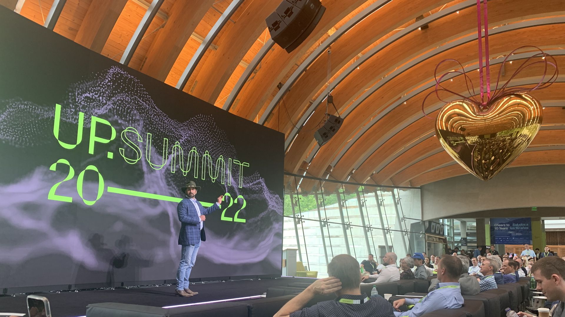 Cyrus Sigari, founder of UP.Summit, speaks Tuesday morning at the event at Crystal Bridges Museum of American Art. Photo: Alex Golden/Axios
