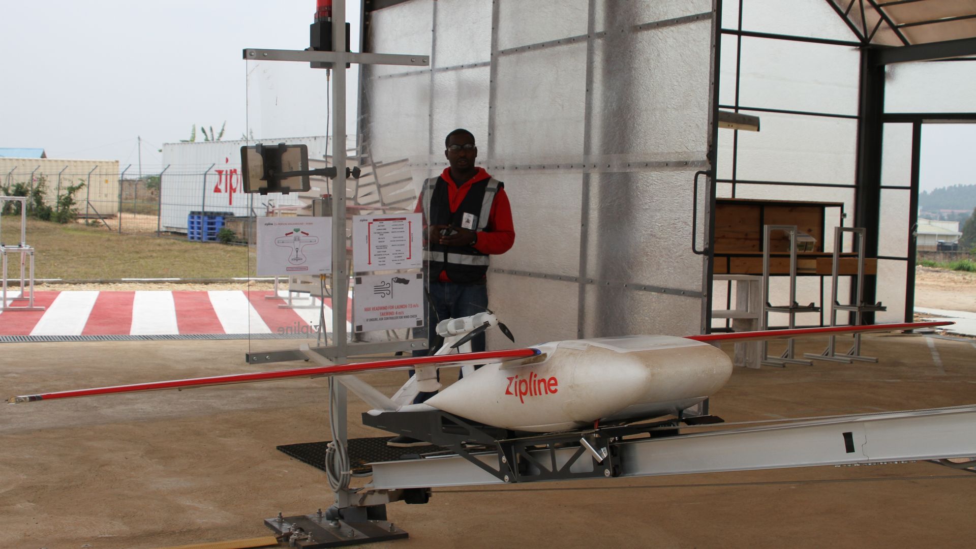 A Zipline prepares a drone that will fly blood supplies to a remote clinic in East African Rwanda in 2018. Photo: Kristin Palitza/Picture Alliance via Getty Images