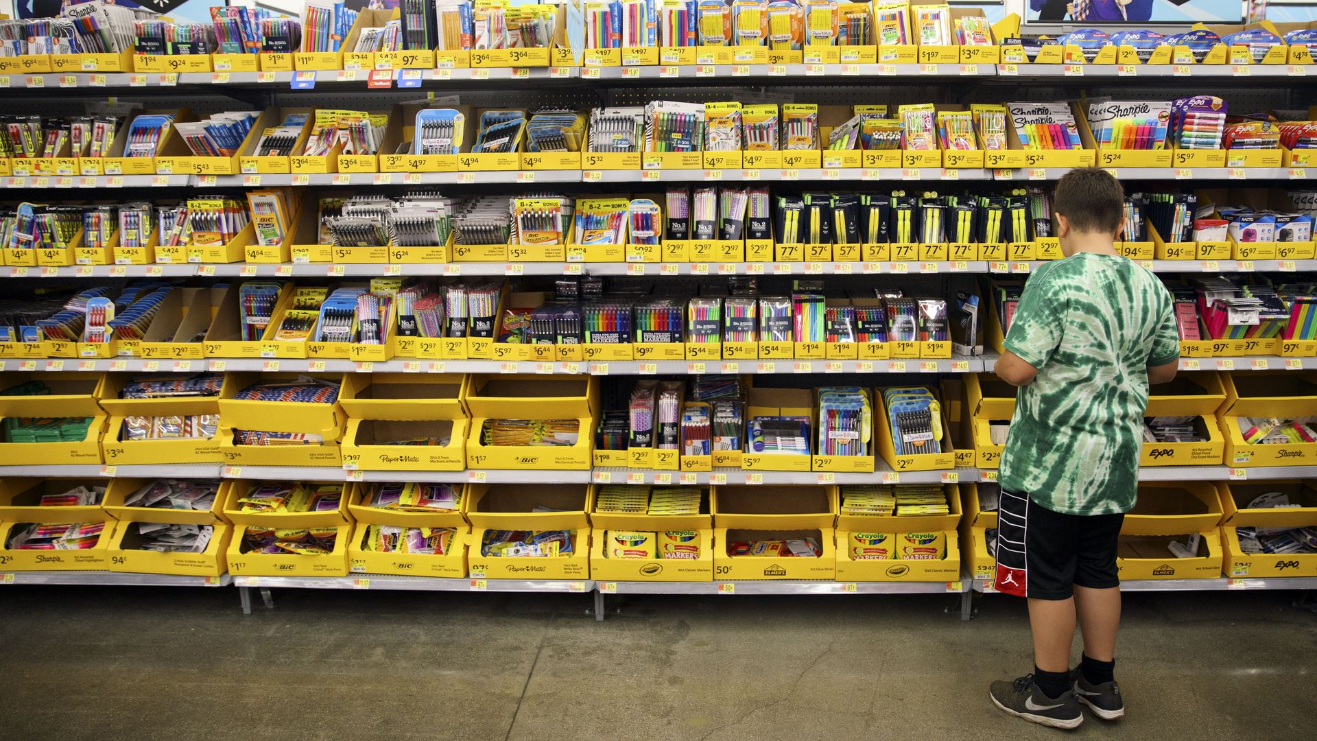 A child browses school supplies at a Walmart location. Photo: Patrick T. Fallon/Bloomberg via Getty Images