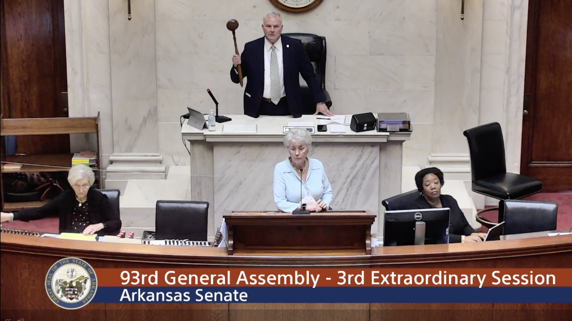 Lt. Gov. Tim Griffin ajourns the Arkansas Senate until Wednesday morning. Screenshot from Arkansas State Legislature