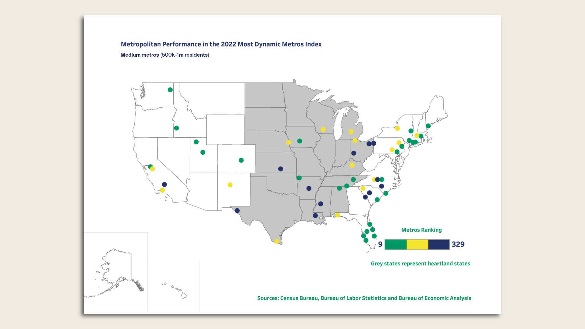 - Seven heartland metros made the top 50; last year it was four.