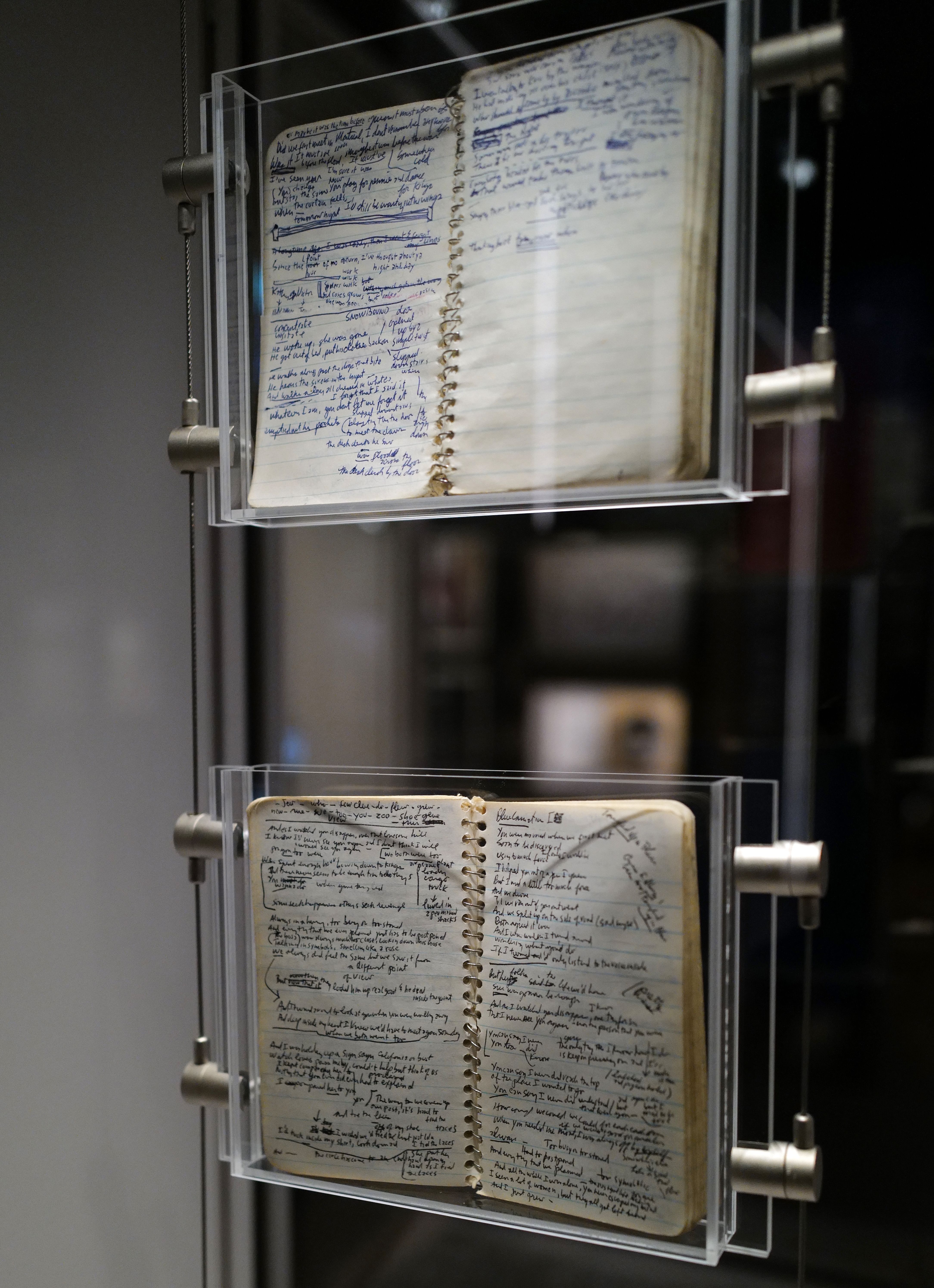 - Two of the three notebooks Dylan used to draft and redraft lyrics to the album "Blood on the Tracks." The red notebook that famously went missing for years was previously on loan from the Morgan Library & Museum in New York City.