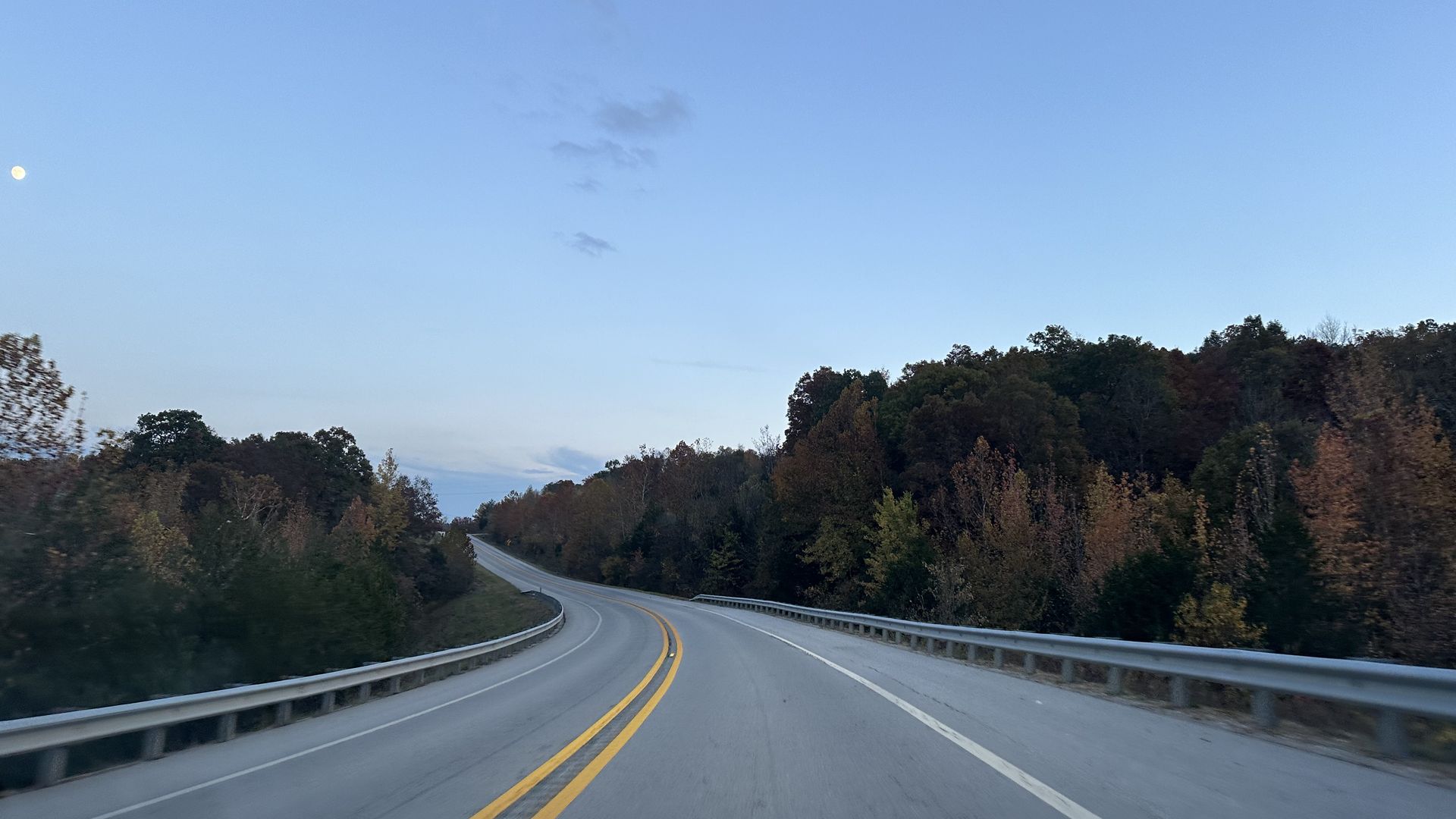 Fall foliage is nearing its peak along Arkansas 16. Photo: Alex Golden/Axios