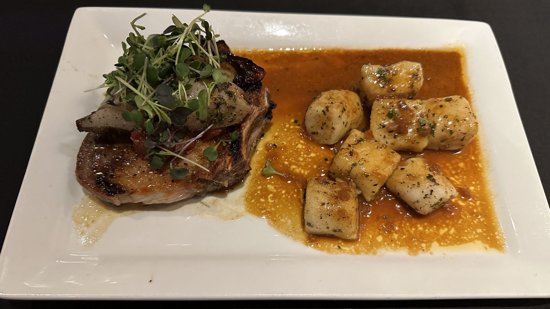 The Ozark bone-in pork chop with brown butter gnocchi. Photo: Alex Golden/Axios
