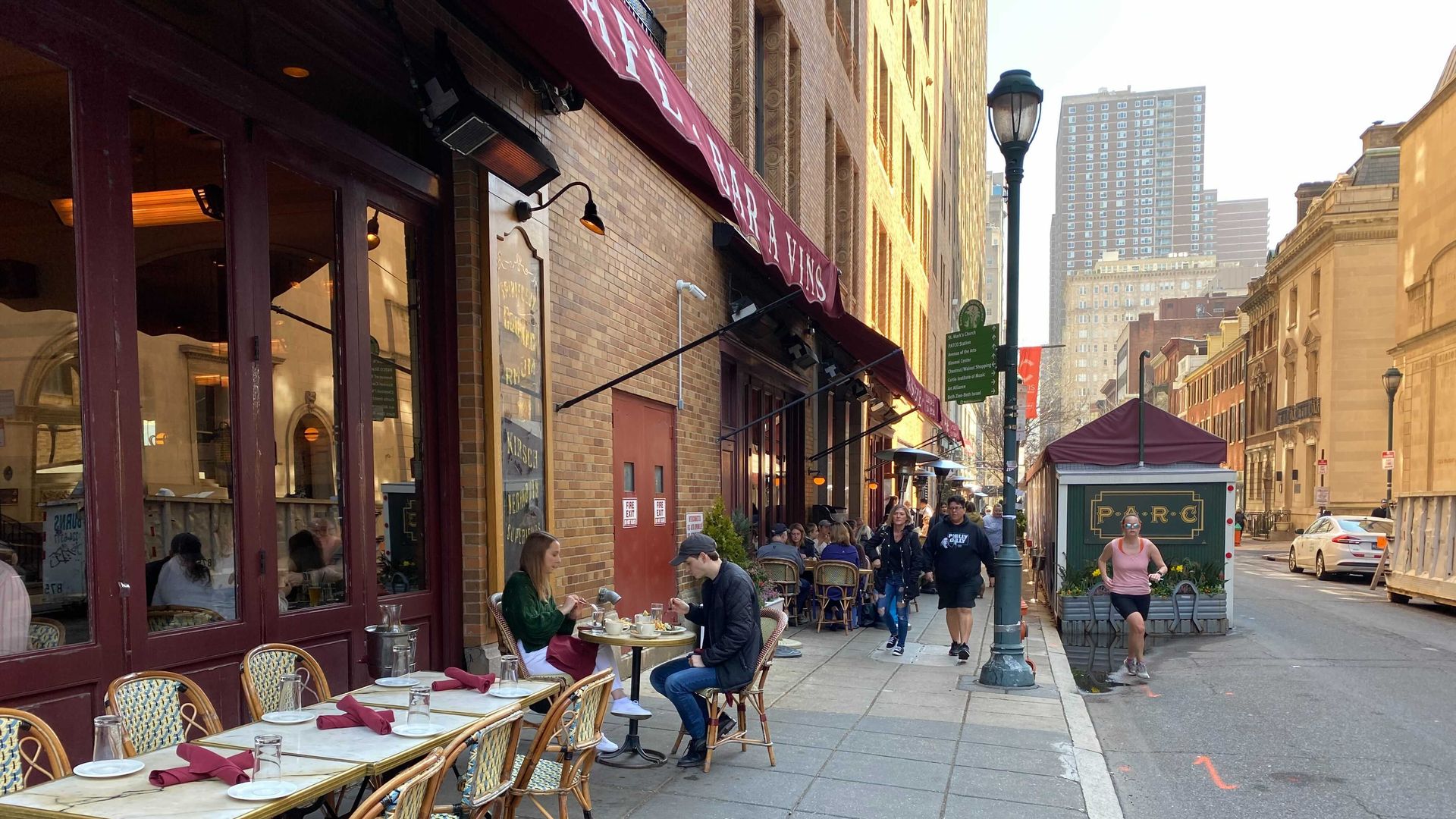 Patrons dining outside Parc in Philadelphia March 18, 2022. Photo: Alexa Mencia/Axios