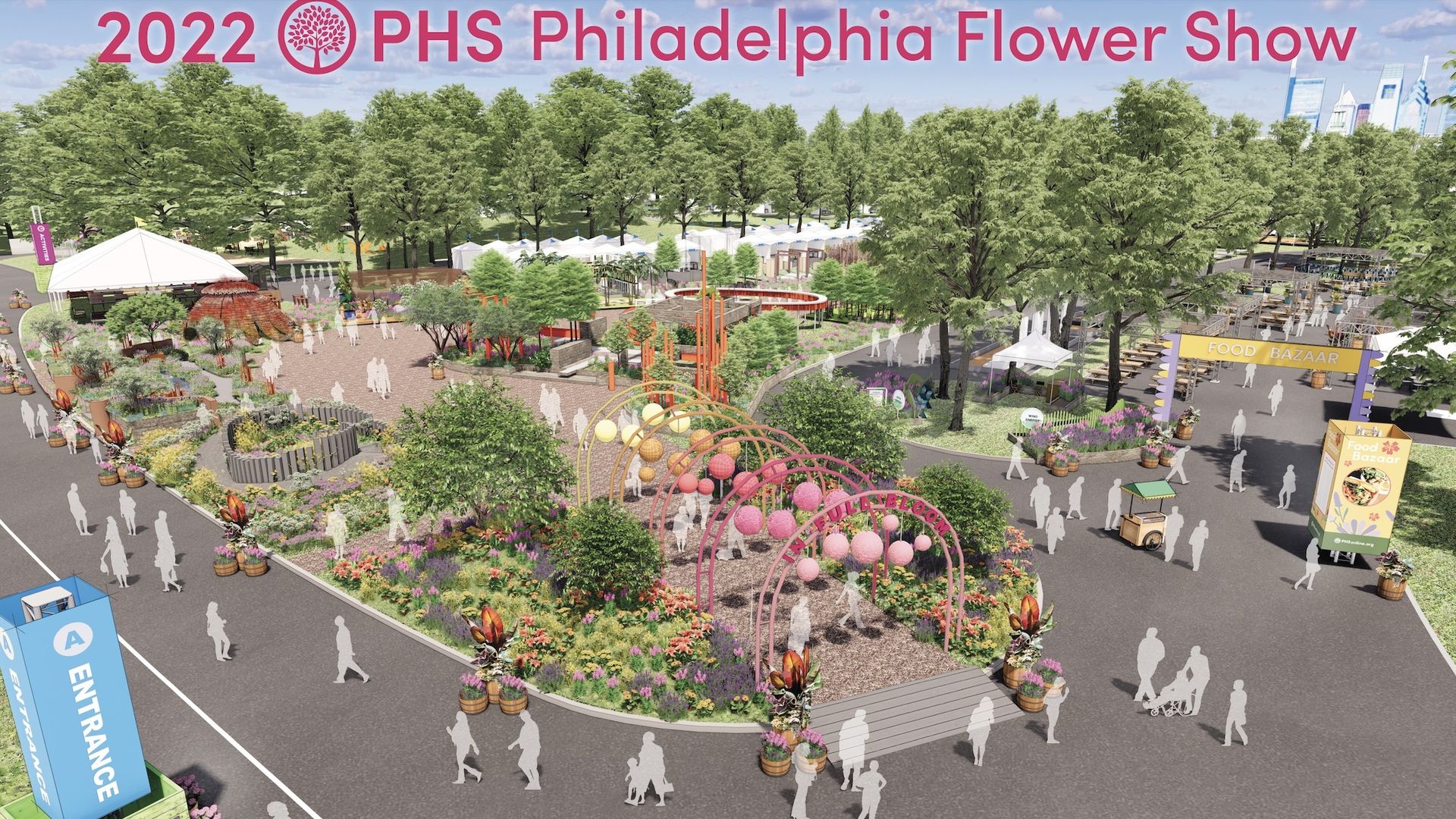 A rendering of the 2022 Philadelphia Flower Show. Courtesy of The Pennsylvania Horticultural Society.