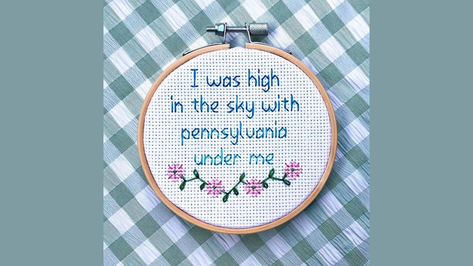 What's happening: Katie Oxman, who runs @taylorswiftstitch on Instagram, posted a series of cross-stitches earlier this month highlighting Swift's lyrical mentions — both direct and indirect — of the Keystone State.