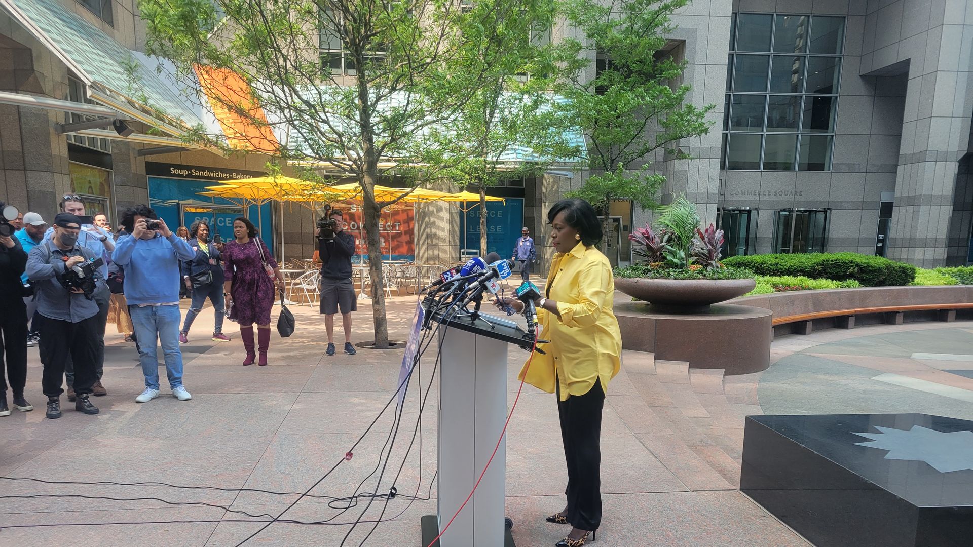 Cherelle Parker holding a press conference Monday. Photo: Isaac Avilucea/Axios