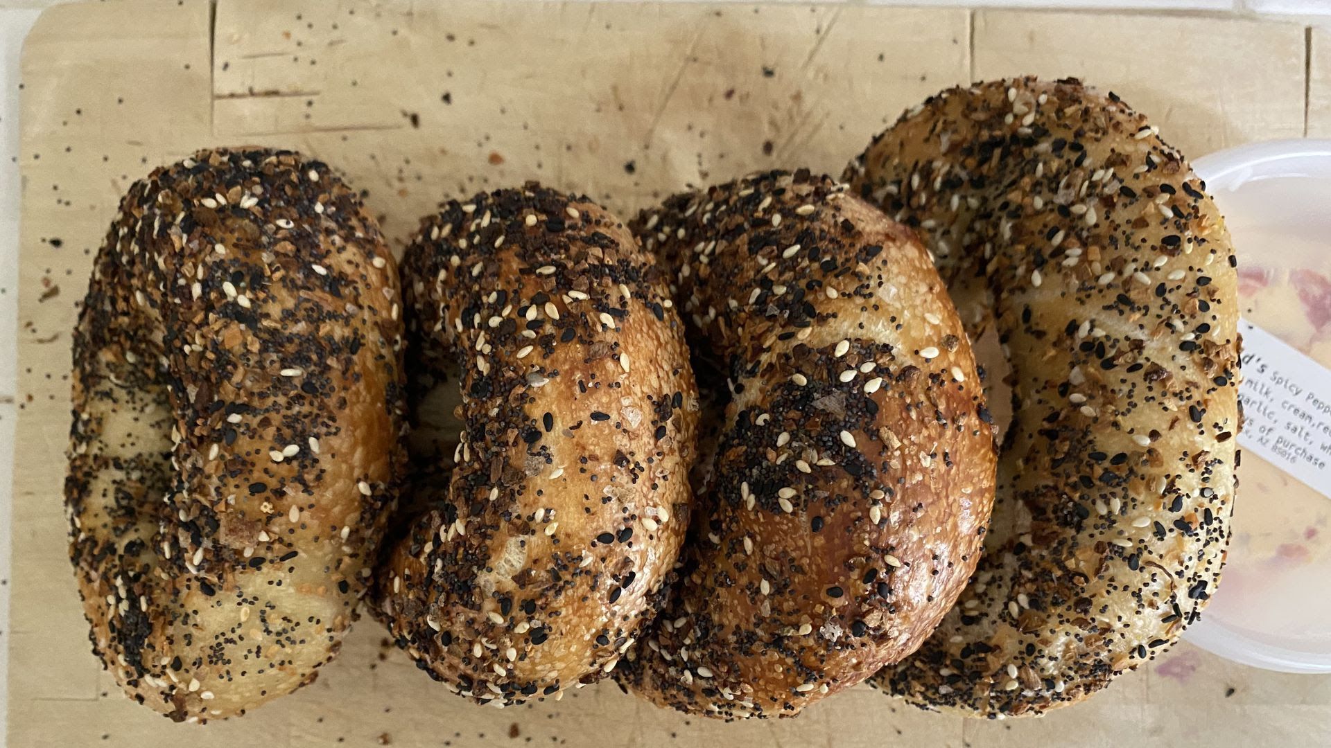 Everything bagels from Bagelfeld Bagels. Photo: Jeremy Duda/Axios