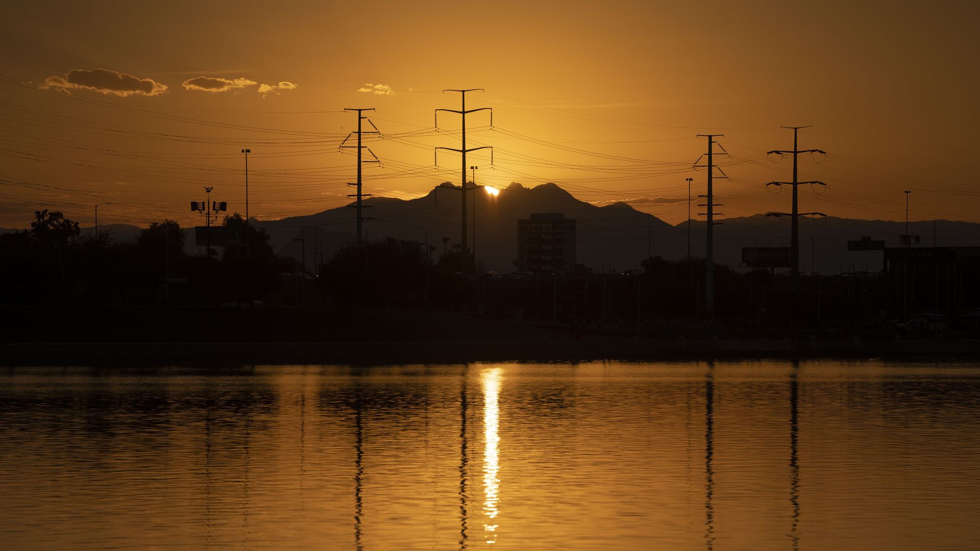 The sun rises at Tempe Town Lake on July 12. Photo: Rebecca Noble/Getty Images