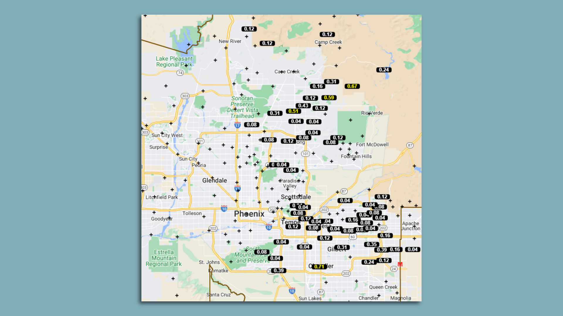 - Chandler saw 0.71 inches during an early morning storm last week while parts of the northeast Valley saw 0.67 inches, per the Flood Control District of Maricopa County.