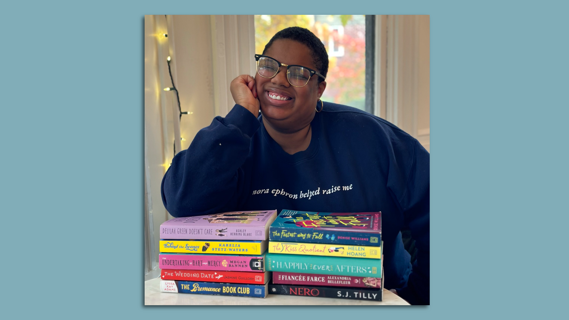 Morgan with some of her favorite romance novels. Photo: Courtesy of Katherine Morgan