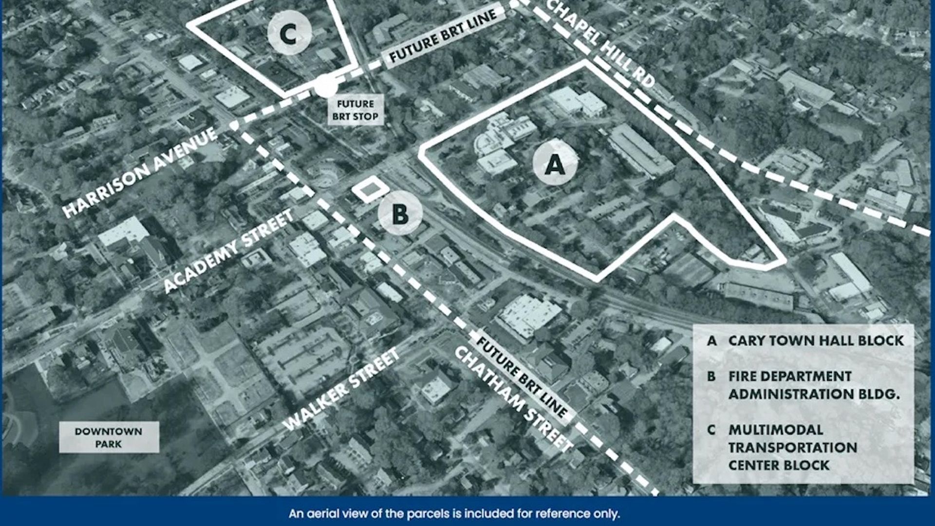 A map of the town-owned properties Cary wants to redevelop. Photo: Town of Cary