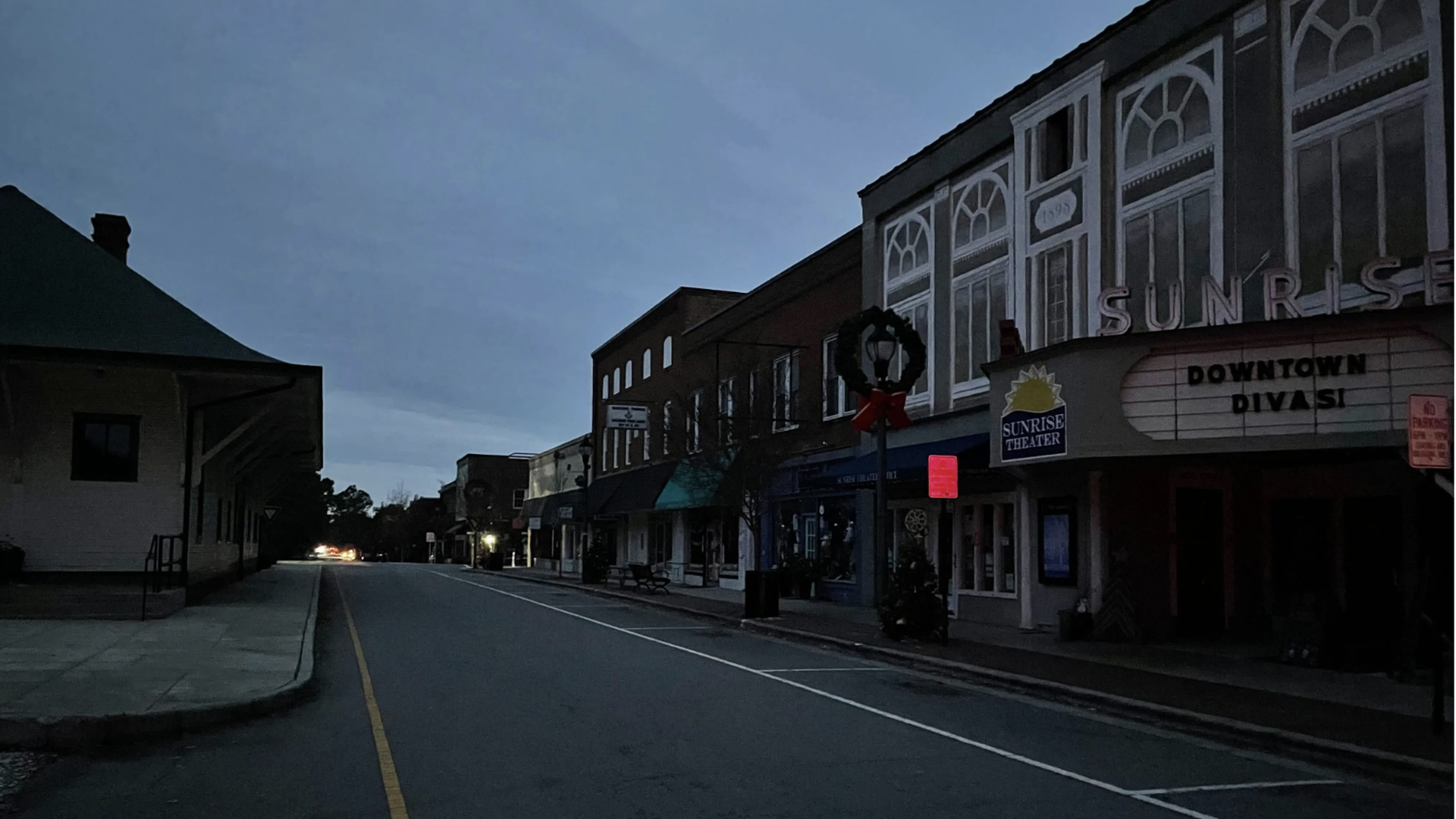 Downtown Southern Pines after an attack on an electric substation left it without power for days. Photo: Zachery Eanes/Axios
