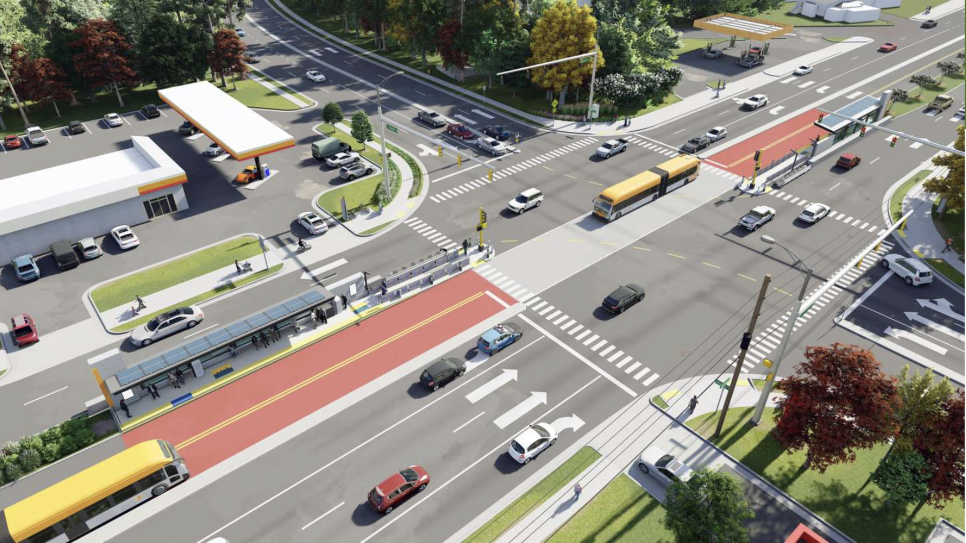 What the bus rapid transit line on New Bern Avenue would look like. Rendering: Courtesy of the city of Raleigh