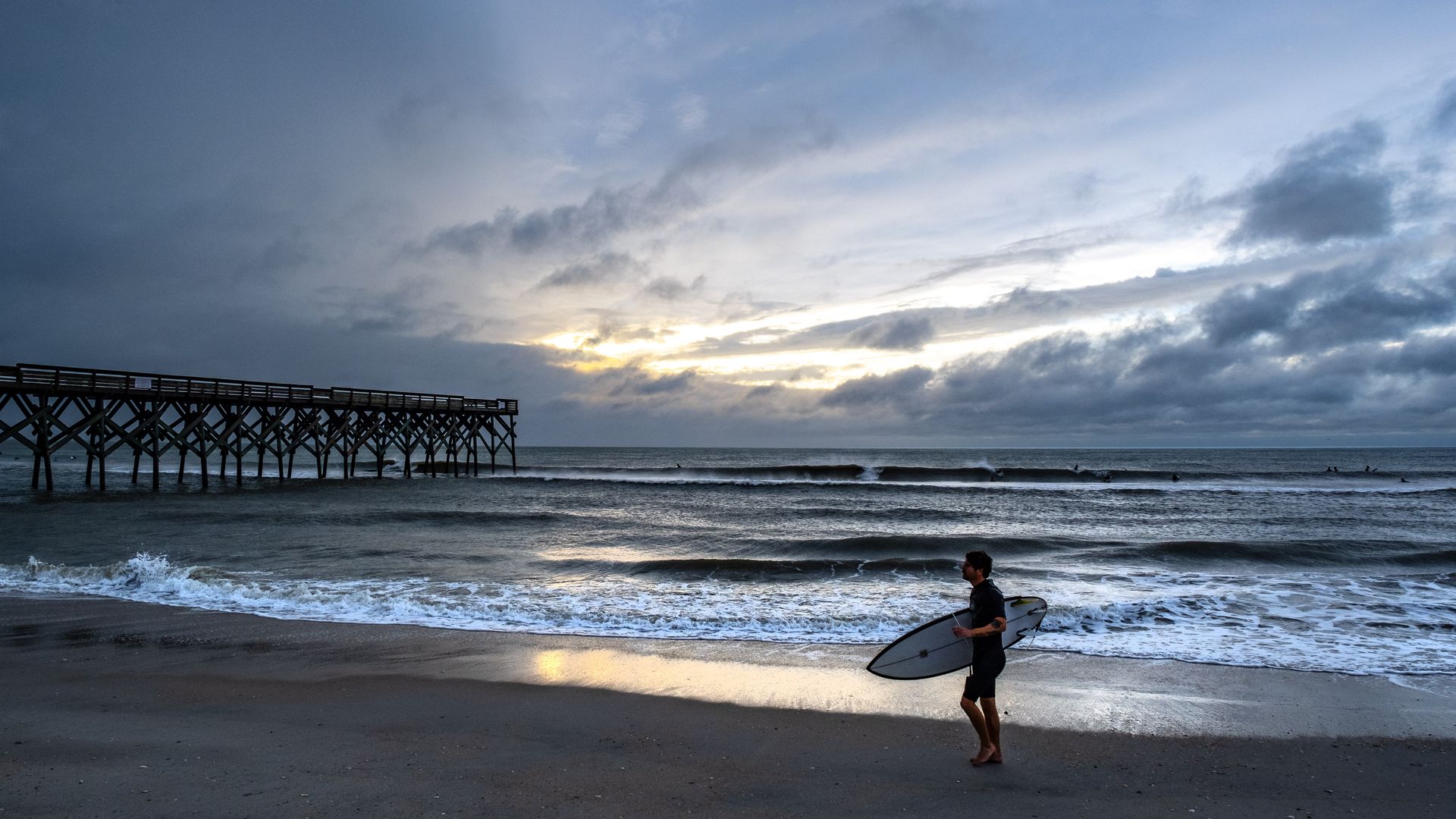 A surfer at Wrightsville Beach on September 23, 2023. Photo: Eros Hoagland/Getty Images