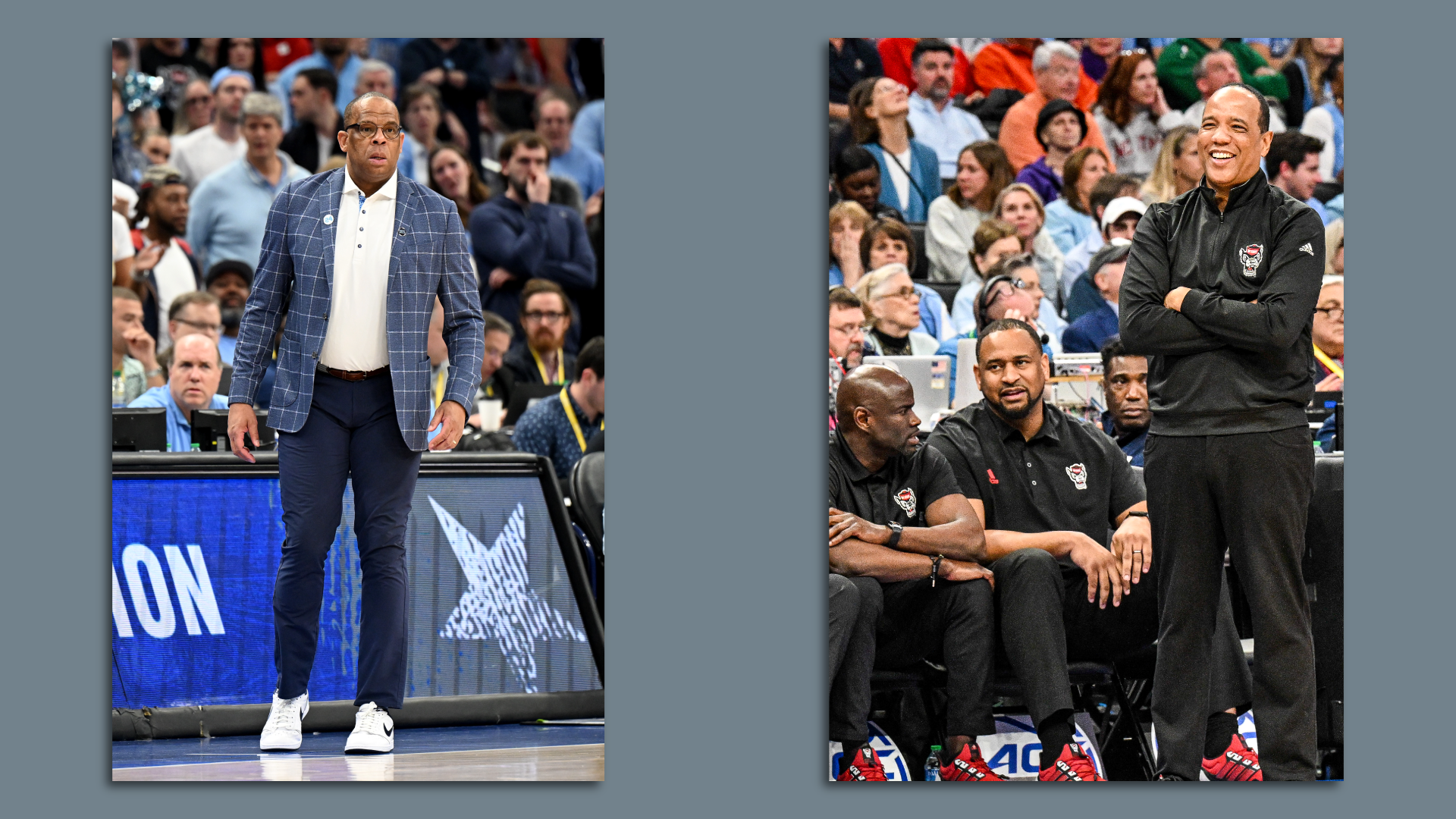 UNC basketball coach Hubert Davis, left, and NC State coach Kevin Keatts both make more than $2 million per year. Photos: Greg Fiume/Getty Images and Mark Goldman/Icon Sportswire via Getty Images