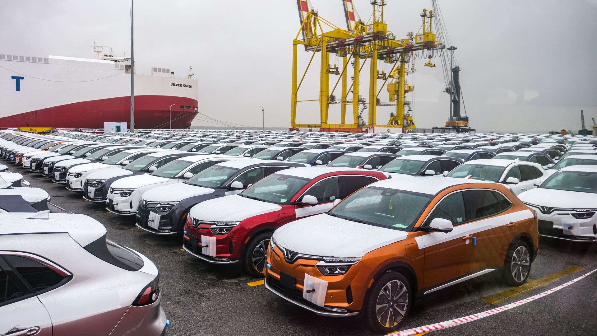 VinFast's VF8 electric vehicles bound for shipment at a port in Haiphong, Vietnam. Photo: Linh Pham/Bloomberg via Getty Images
