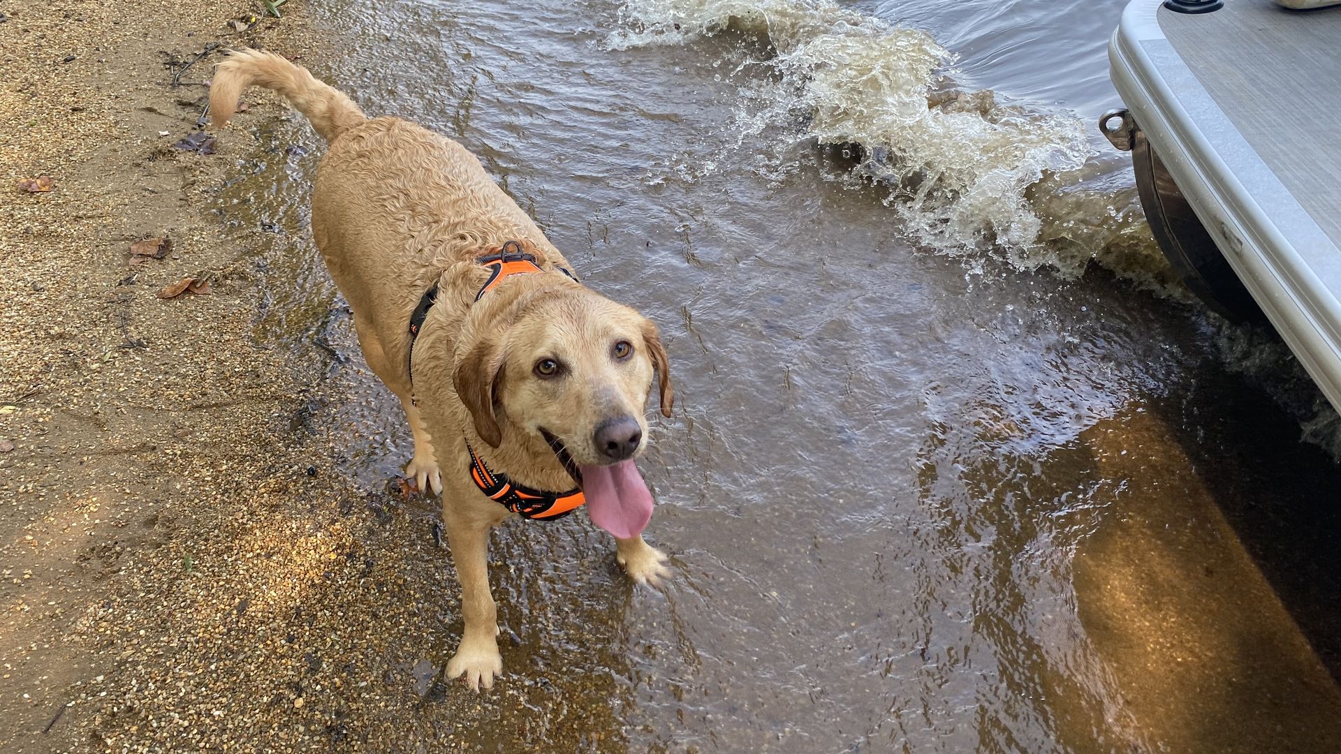 Karri's dog saying, "Please take me to an Airbnb dog park with water." Photo: Karri Peifer/Axios