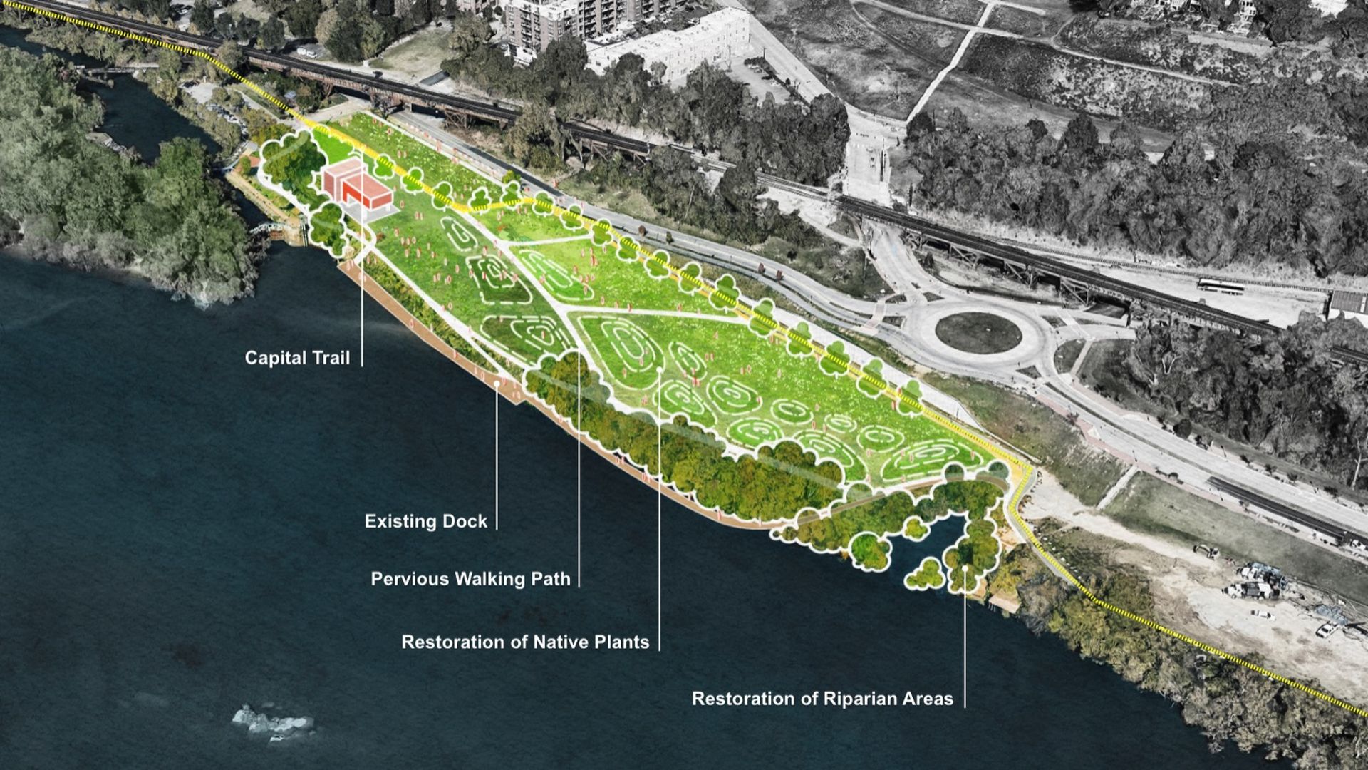 Dock Street Park is near the roundabout on the way toward Rocketts Landing. Image: Courtesy of the city of Richmond