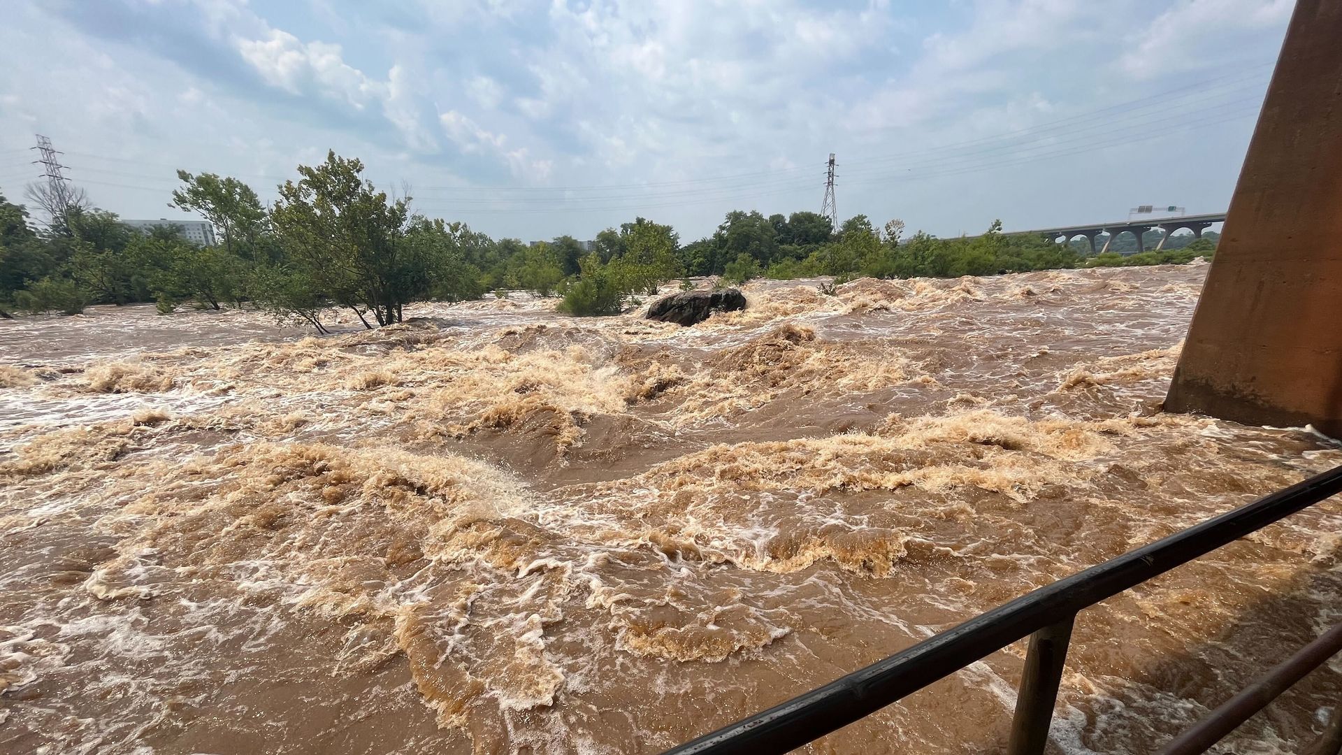 The James River yesterday around 11:30am, as seen safely from the Pipeline trail. Photo: Fadel Allassan/Axios