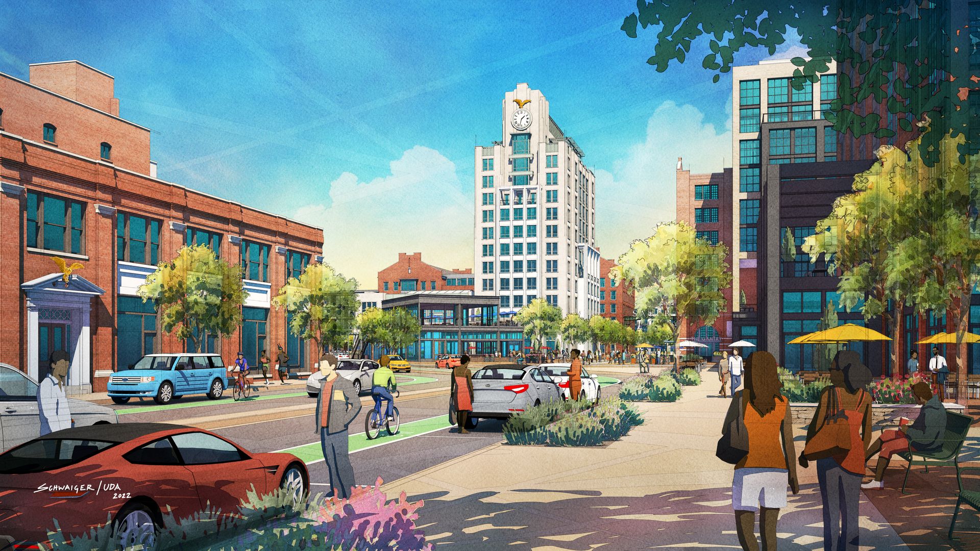 View from the intersection of Meadow and Broad. Rendering: Courtesy of Urban Design Associates