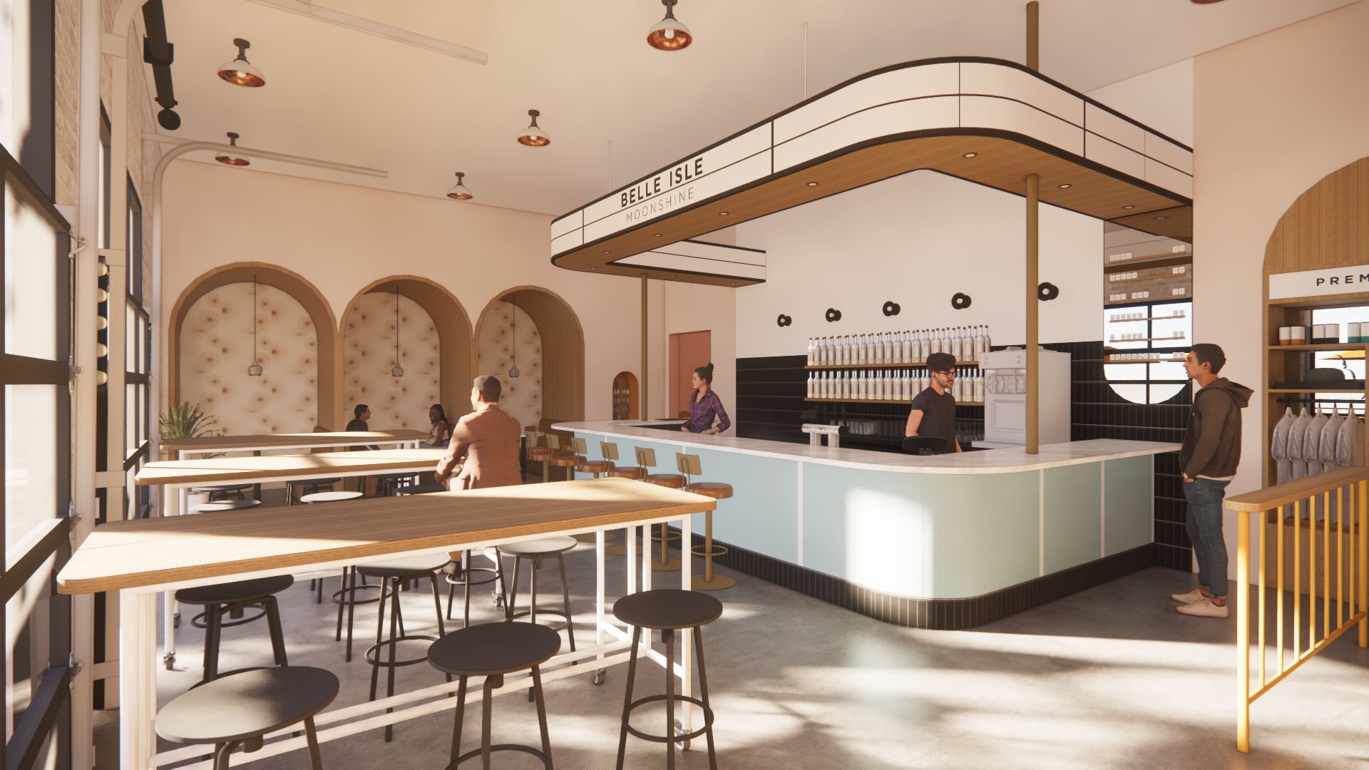 A rendering of Belle Isle's new tasting room. Image: Courtesy of Campfire & Co.