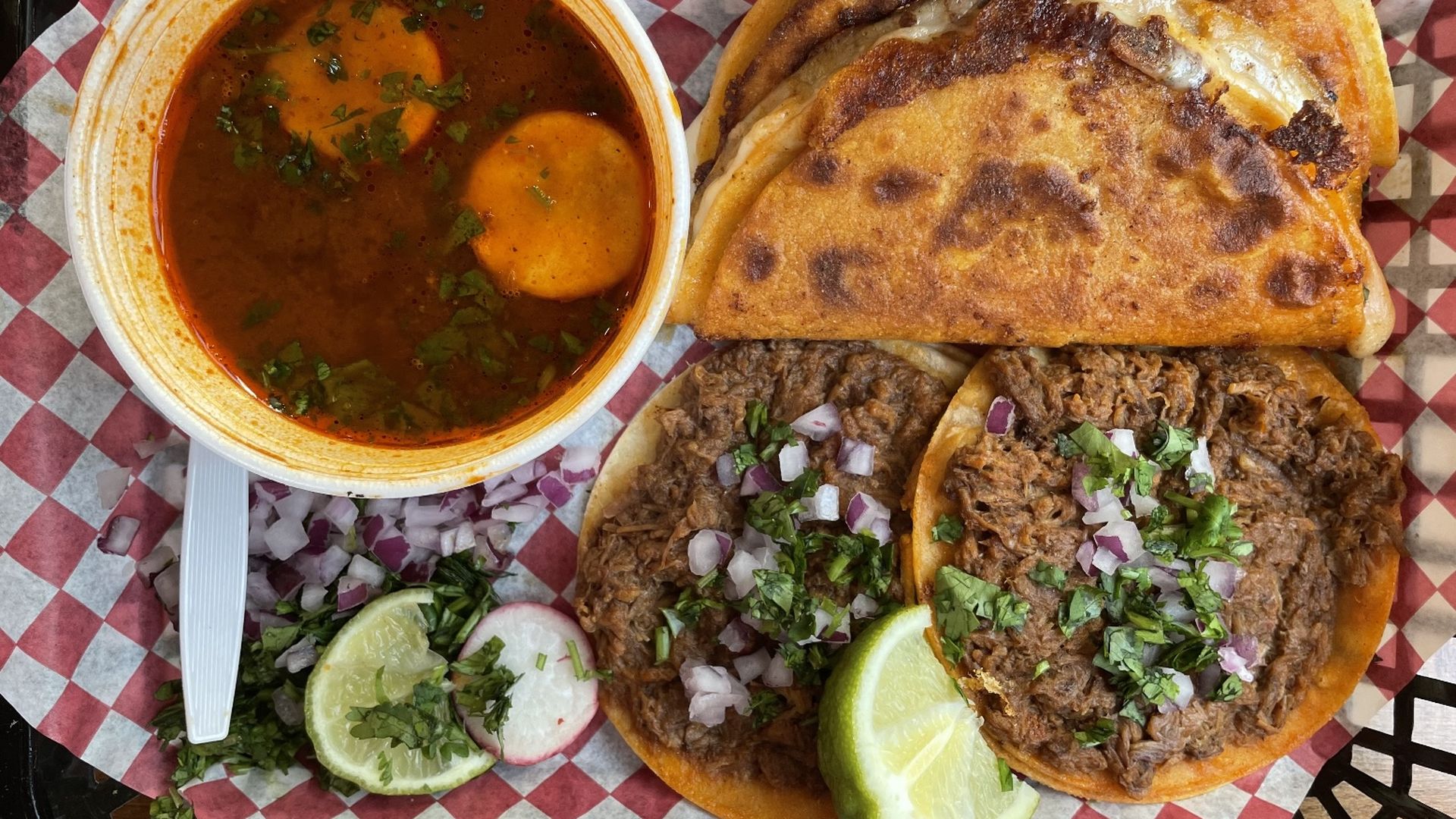 Details: The restaurant's main entree is its quesabirria tacos. The tacos are first stuffed with beef birria and their house blend of cheese and then grilled to create a crispy tortilla.