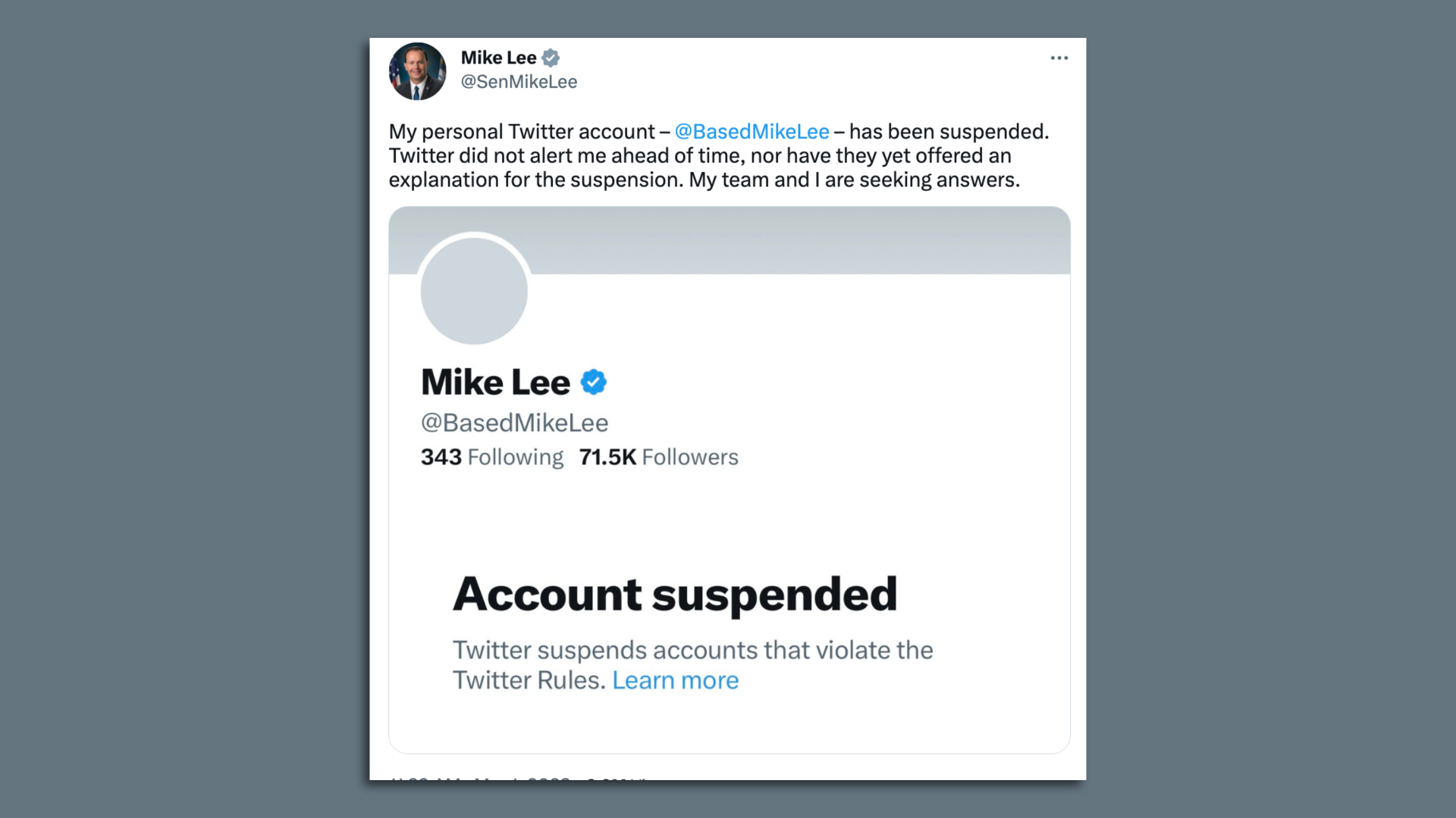 "Based Mike Lee" Twitter account is briefly suspended