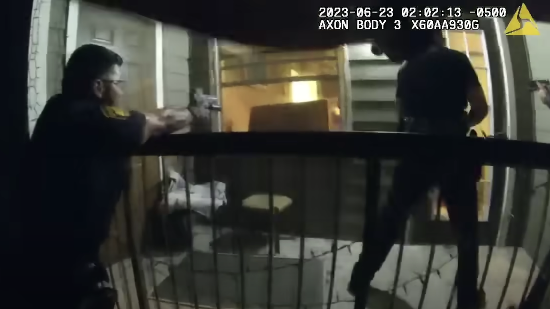 - Perez then moved toward the glass patio door with the hammer, and the officer who fired previously and two other officers opened fire.