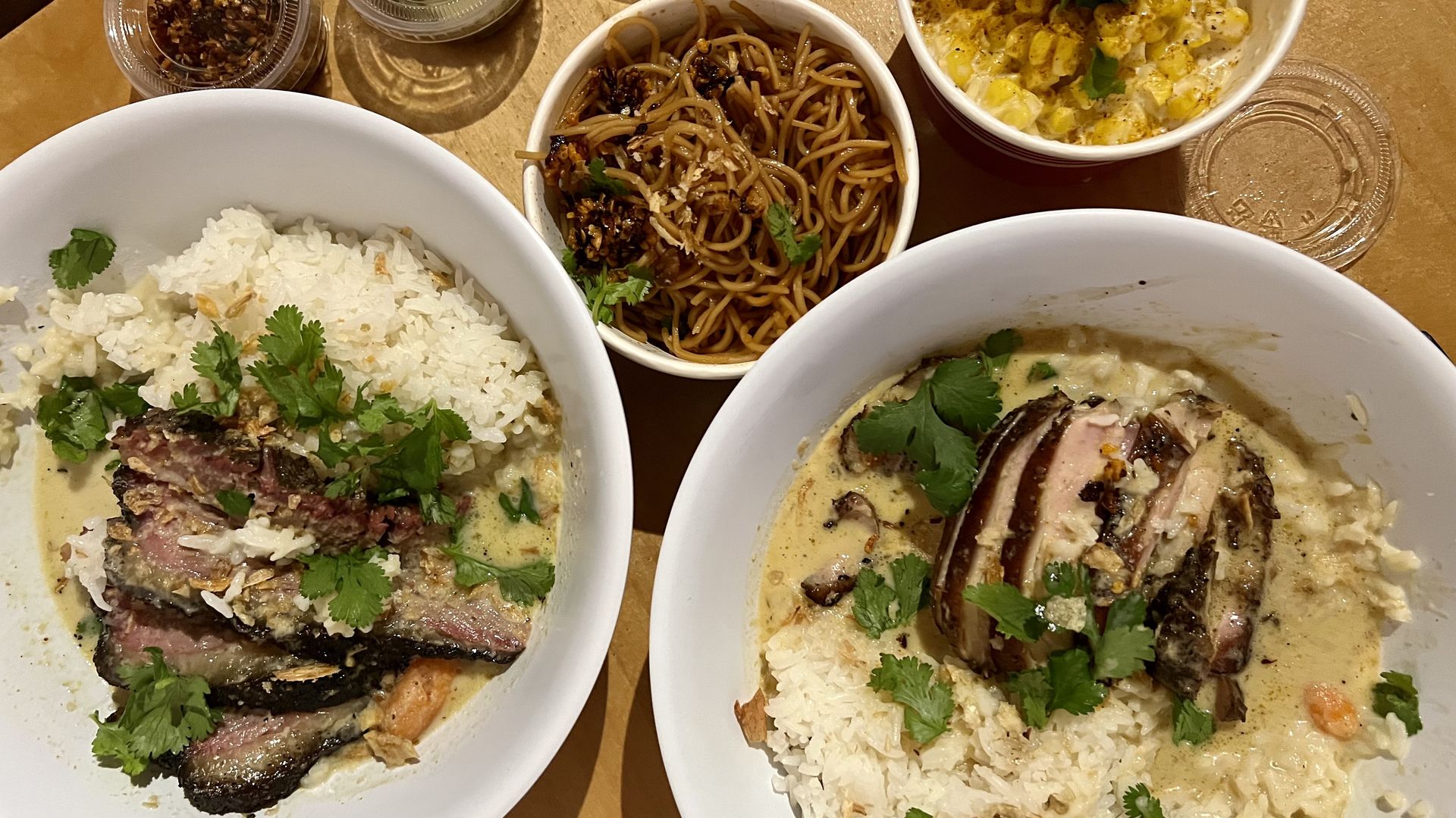 Bowls from Curry Boys. Photo: Madalyn Mendoza/Axios