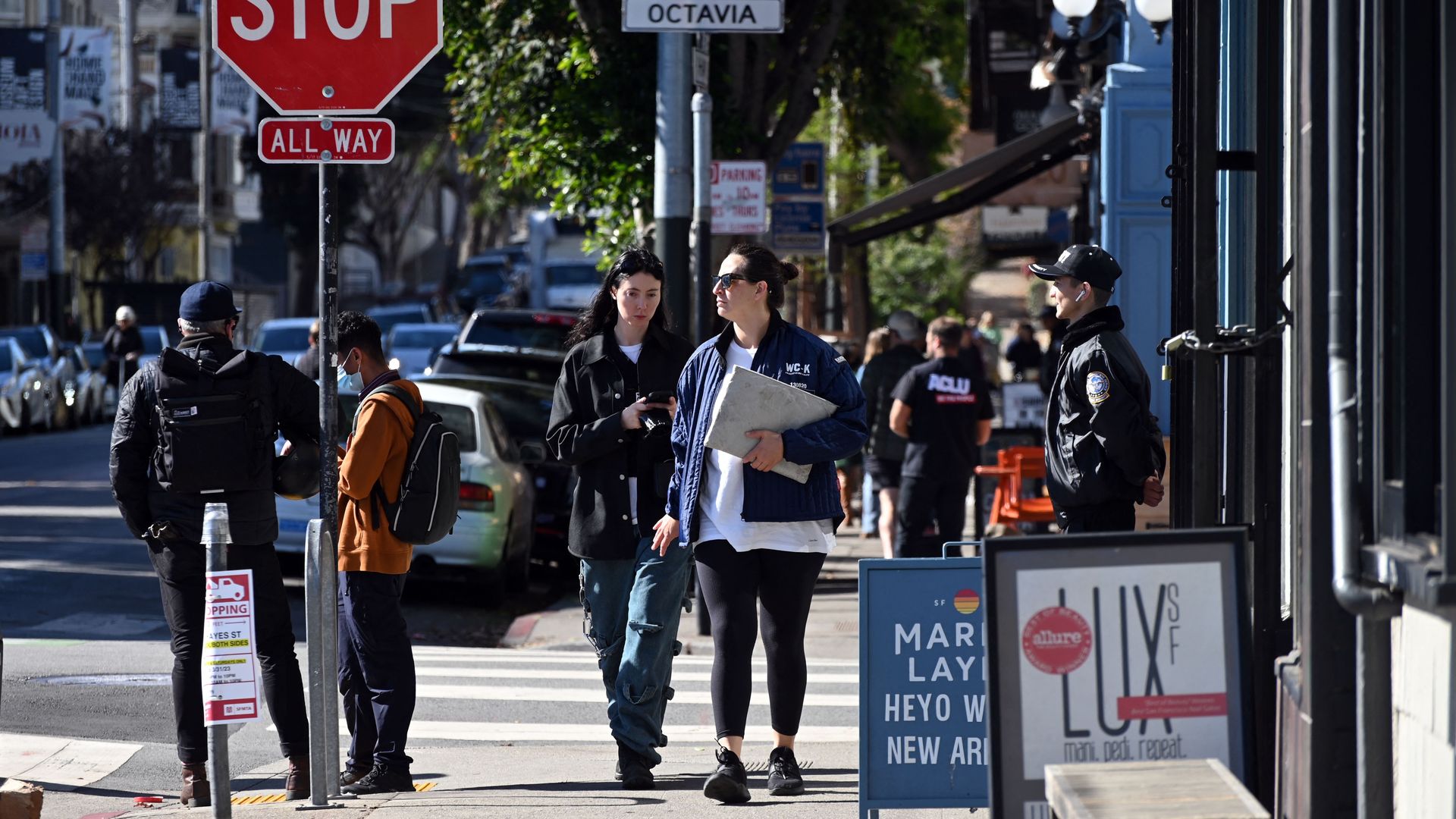 People walk in Hayes Valley in 2022. Photo: Samantha Laurey/AFP via Getty Images