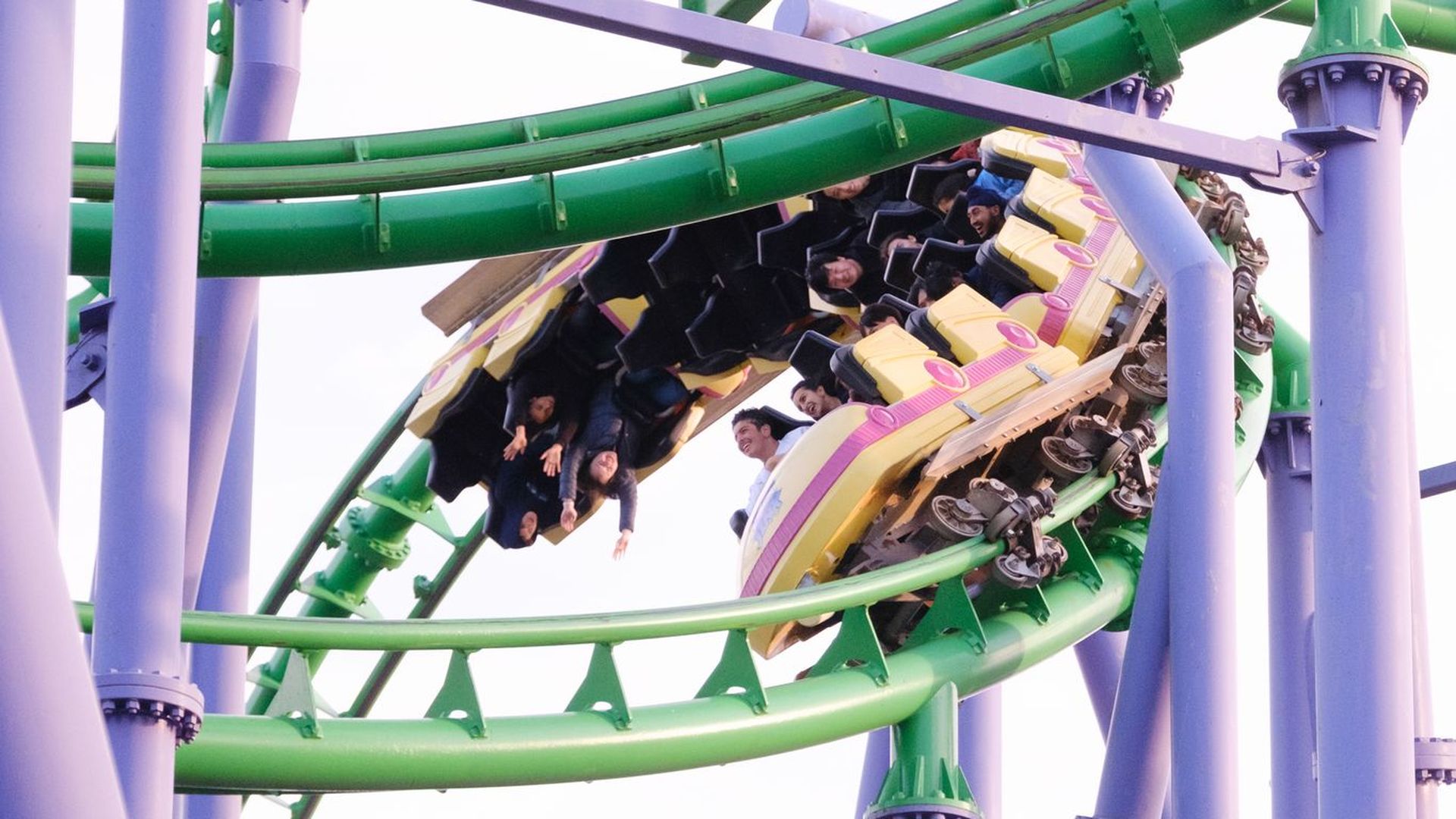 The Joker's Jinx roller coaster at Six Flags amusement park in Upper Marlboro, Md., in October 2022. Photo: Michael Connor for The Washington Post via Getty Images