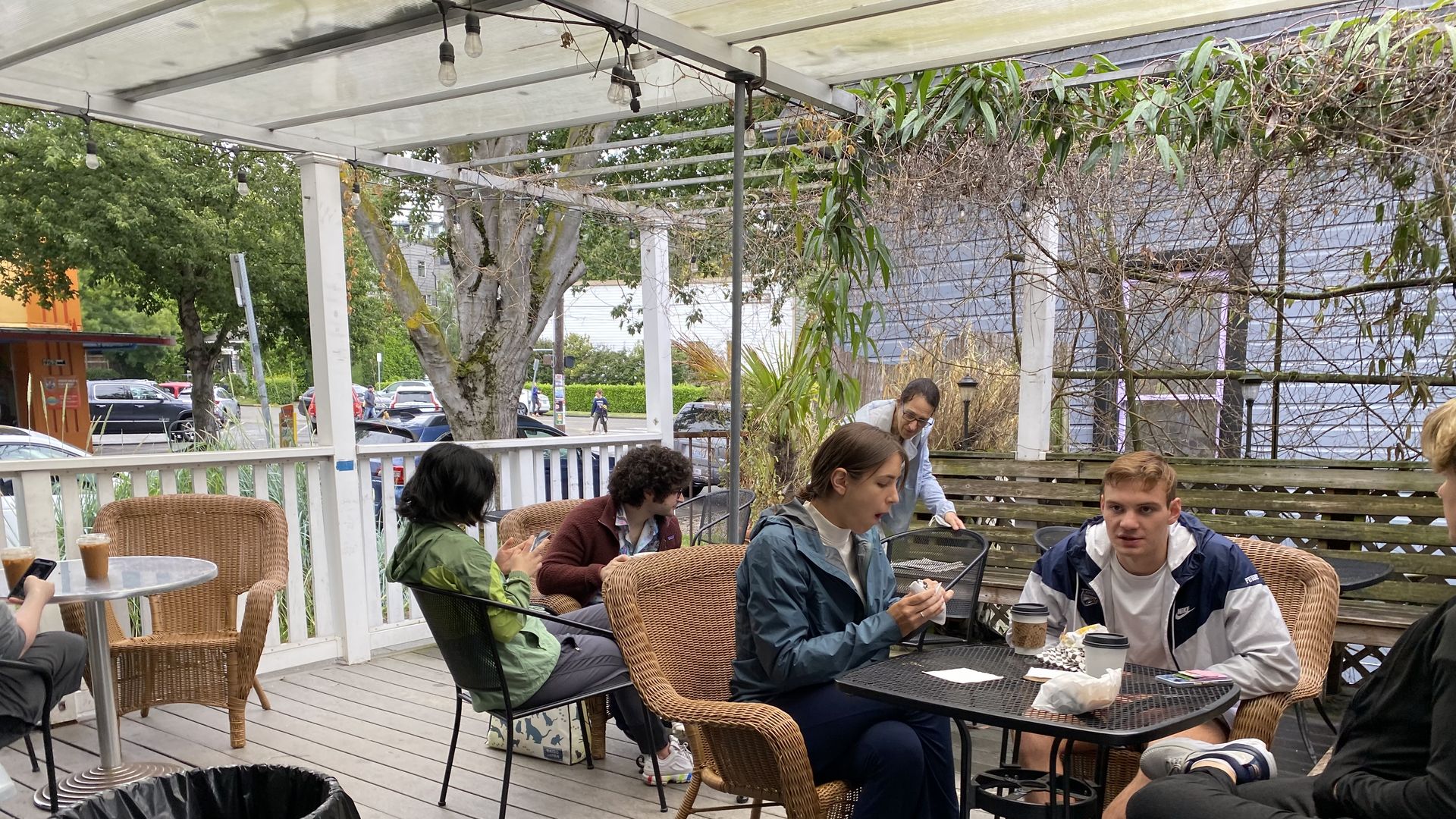 The patio is mostly covered, and some seats facing the street have heating, too. Photo: Melissa Santos/Axios