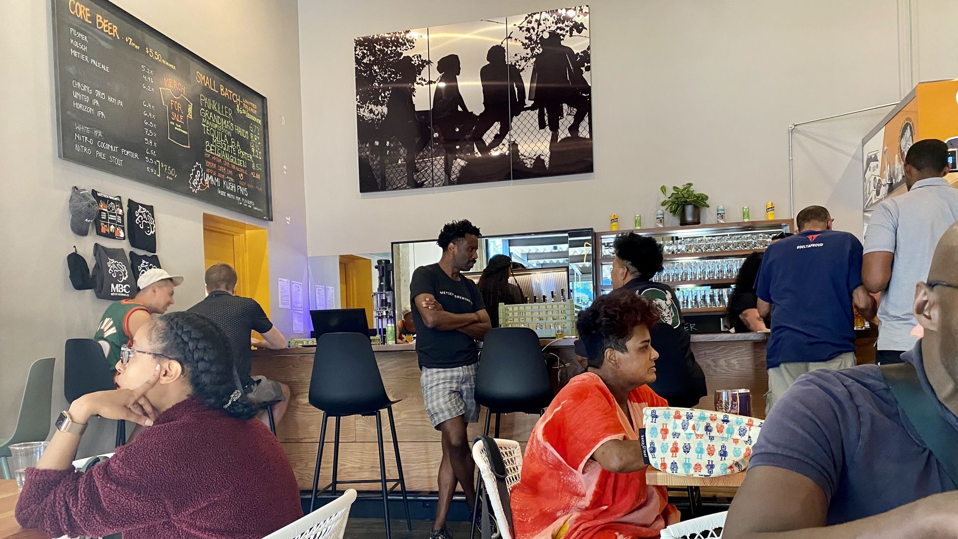 Inside of the taproom at Métier Brewing Company. Photo: Melissa Santos/Axios