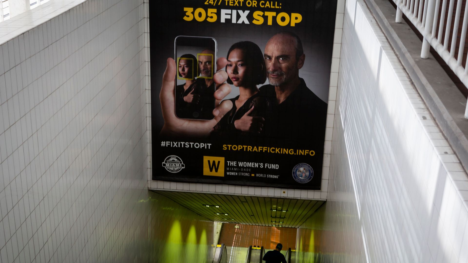 An anti-trafficking poster in Miami ahead of its Super Bowl last year. Photo: Eva Marie Uzcategui/AFP via Getty Images