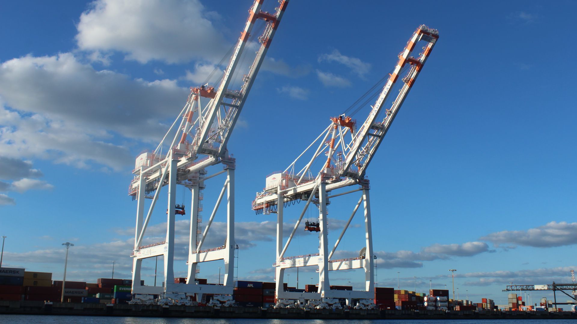 Container cranes at Port Tampa. Photo: Morissey Montgomery for Axios
