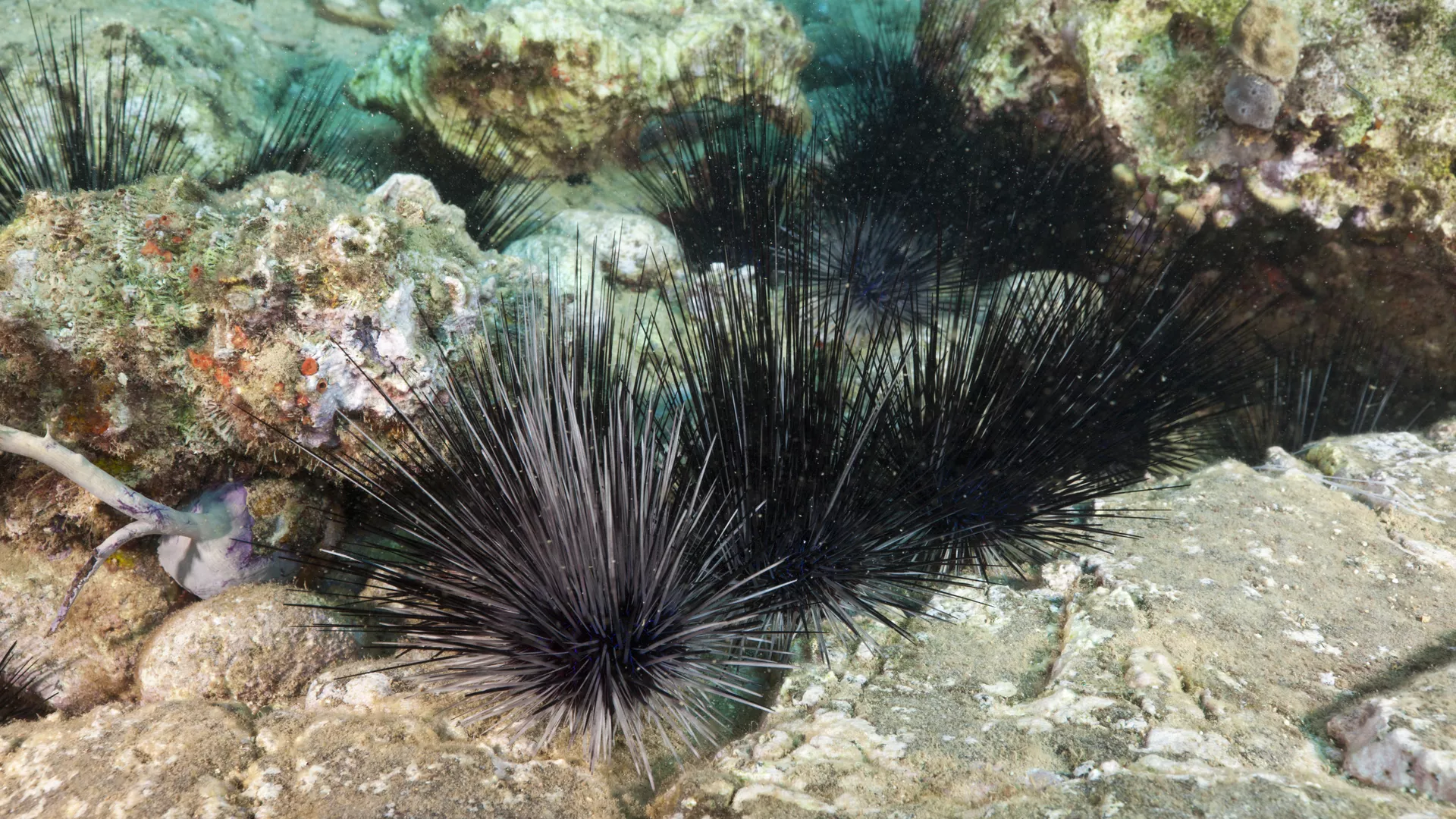 Long-spined sea urchins in the Caribbean Sea, near Dominica. Photo: Reinhard Dirscherl/ullstein bild via Getty Images