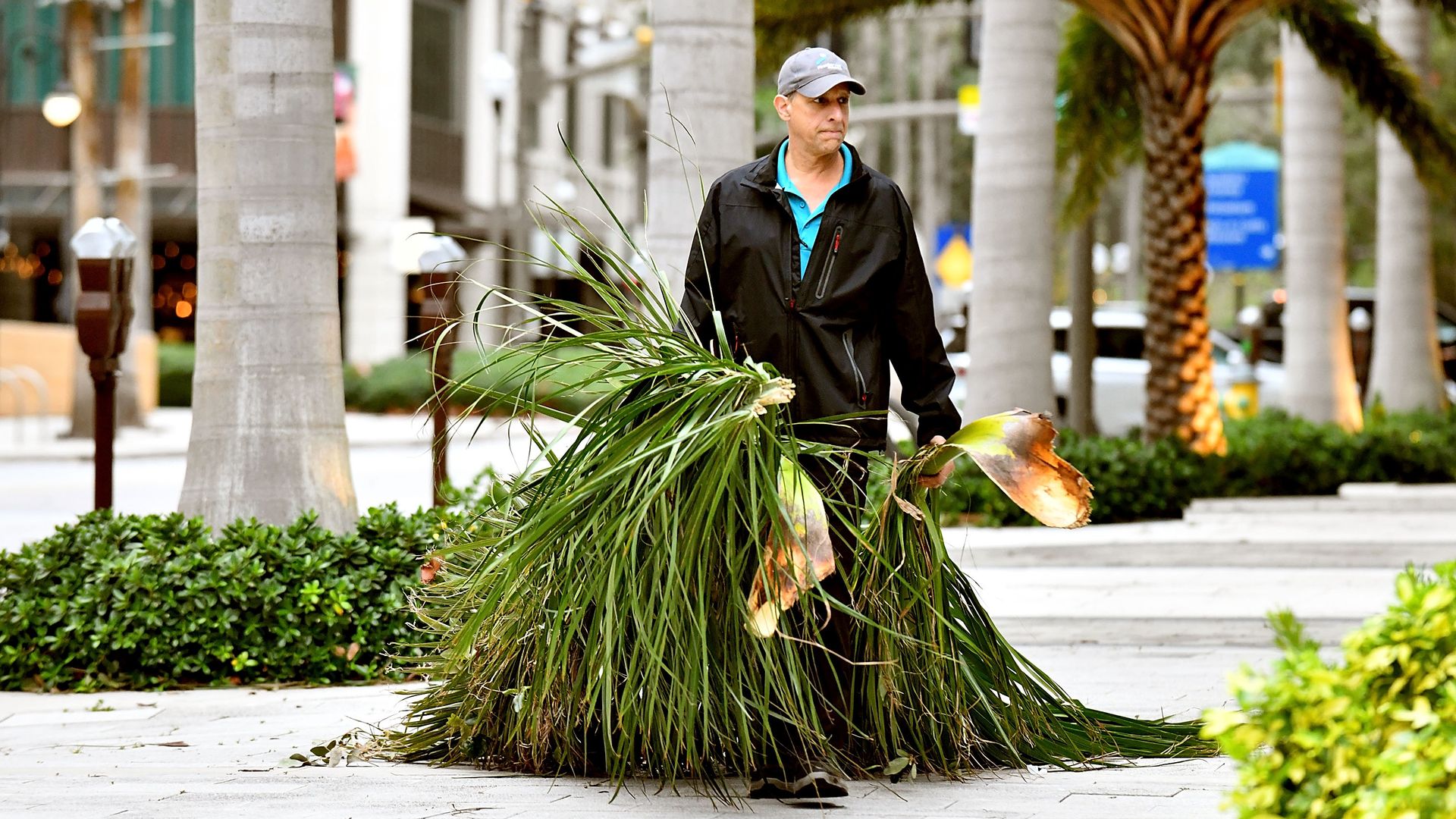 A resident cleans debris in downtown St.Petersburg after Hurricane Ian. Photo: Gerardo Mora/Getty Images