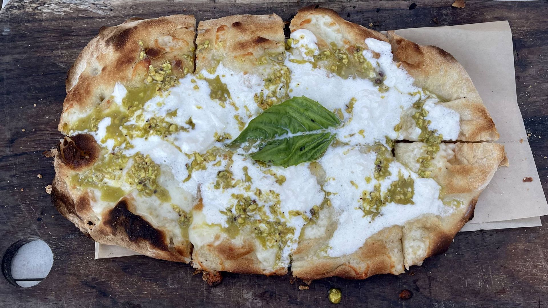 The Bronte pinsa (minus the mortadella). Photo: Selene San Felice/Axios