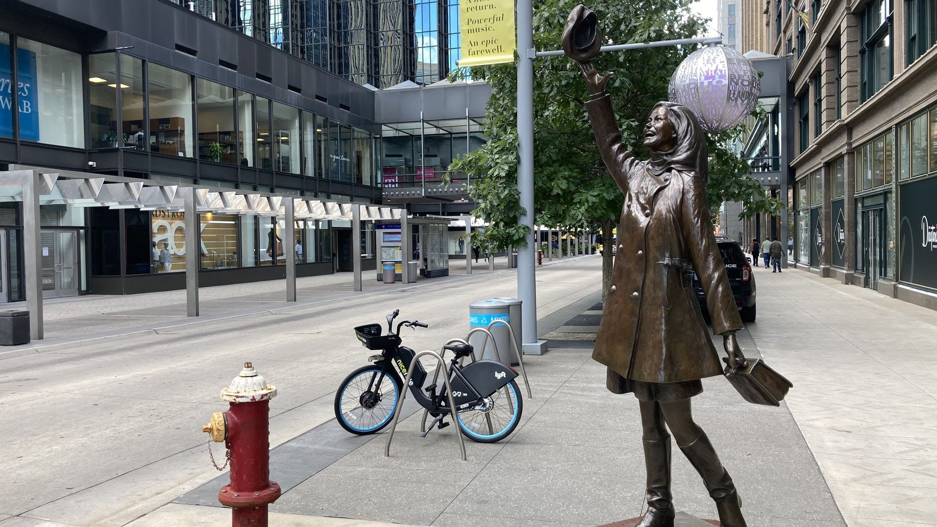 Mary Tyler Moore's statue depicts her fictional character's introduction to Minneapolis. Photo: Nick Halter/Axios