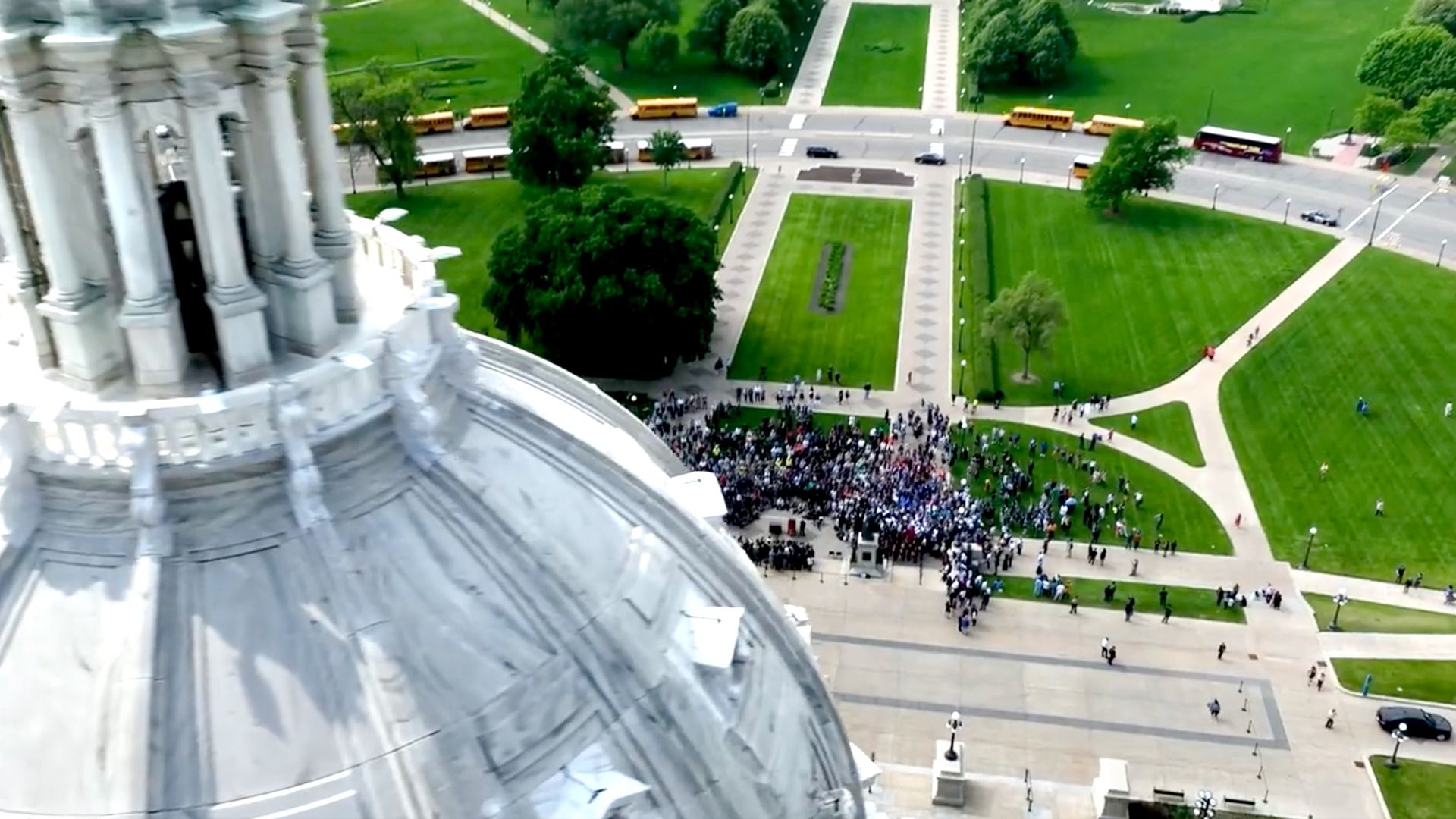 The view from above the rally. Screenshot of video shared by Gov. Tim Walz on Twitter