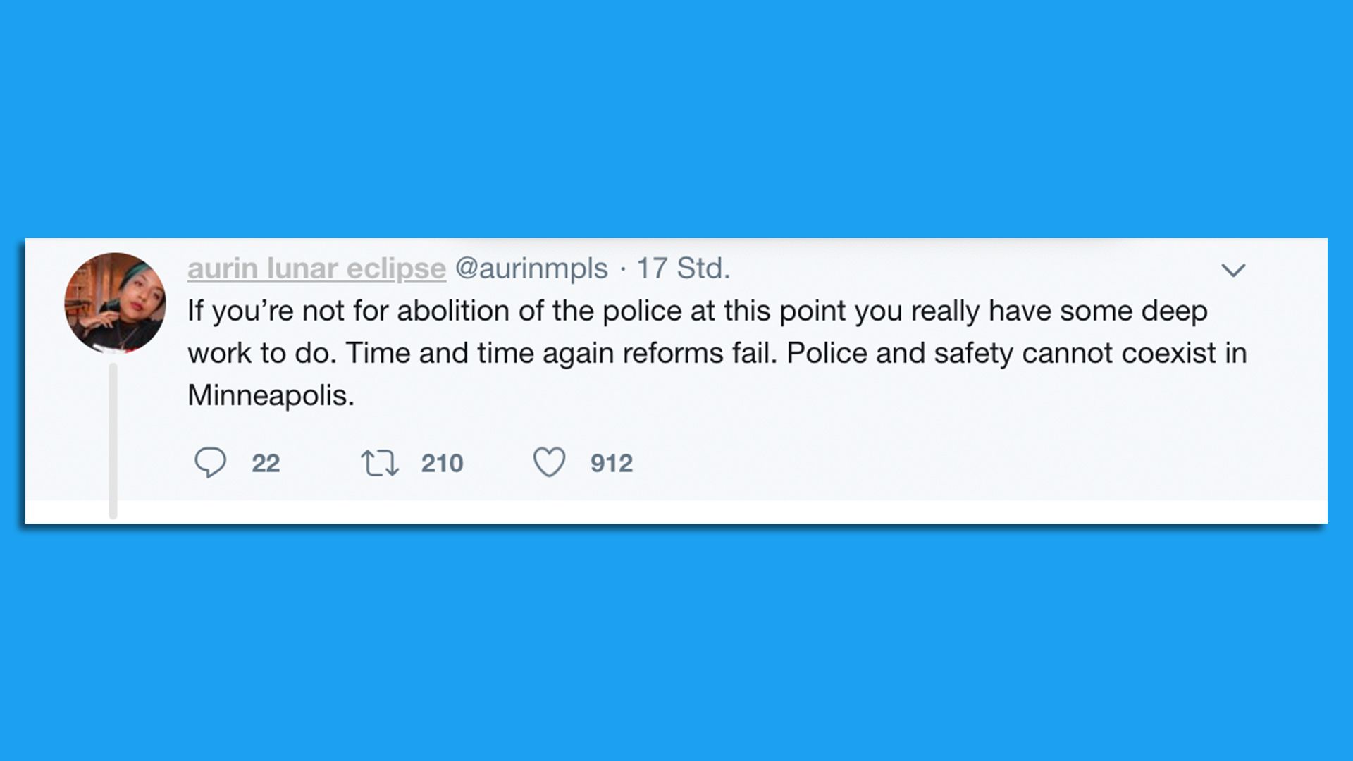 - "If you're not for abolition of the police at this point you really have some deep work to do," one 2020 post reads. "Time and time again reforms fail. Police and safety cannot coexist in Minneapolis."