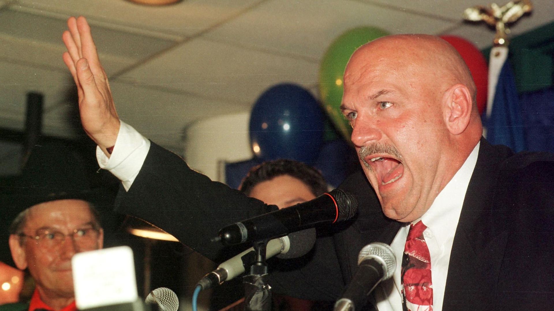 Jesse Ventura celebrated his election win on Nov. 3, 1998 at Canterbury Park. Photo: Craig LassigAFP via Getty Images